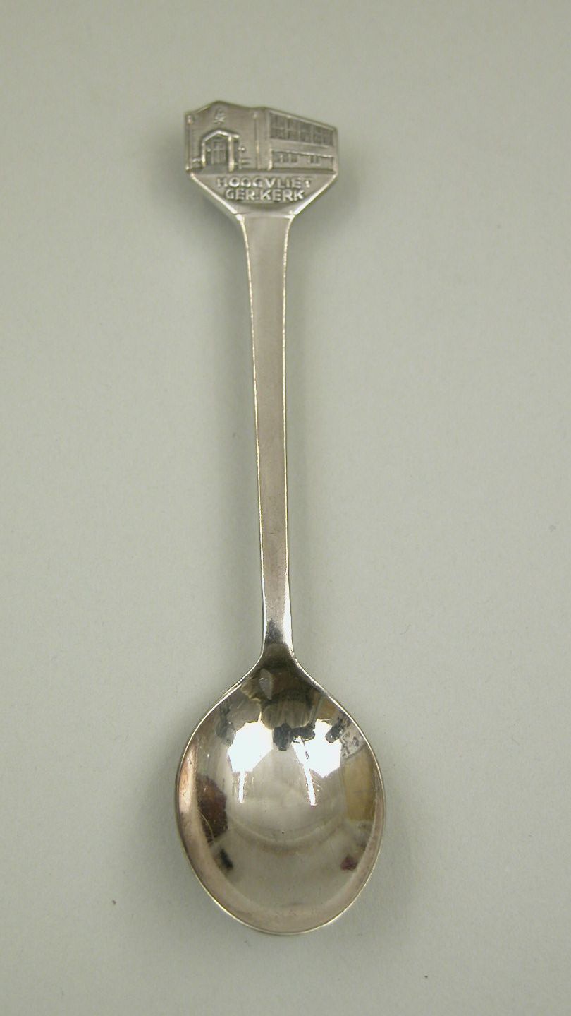 Theelepel met "Giessenburg N.H. kerk" met kerkgebouw