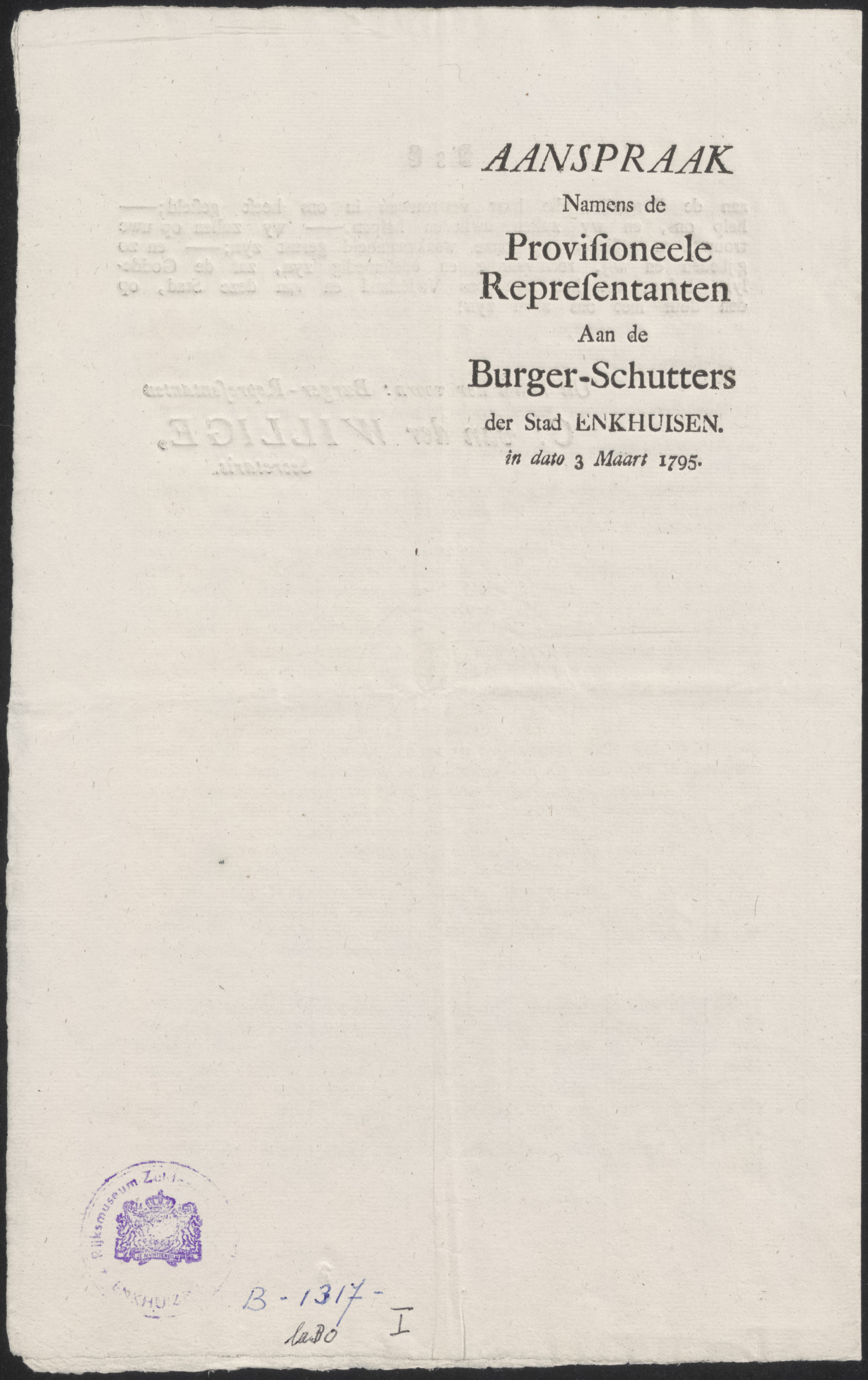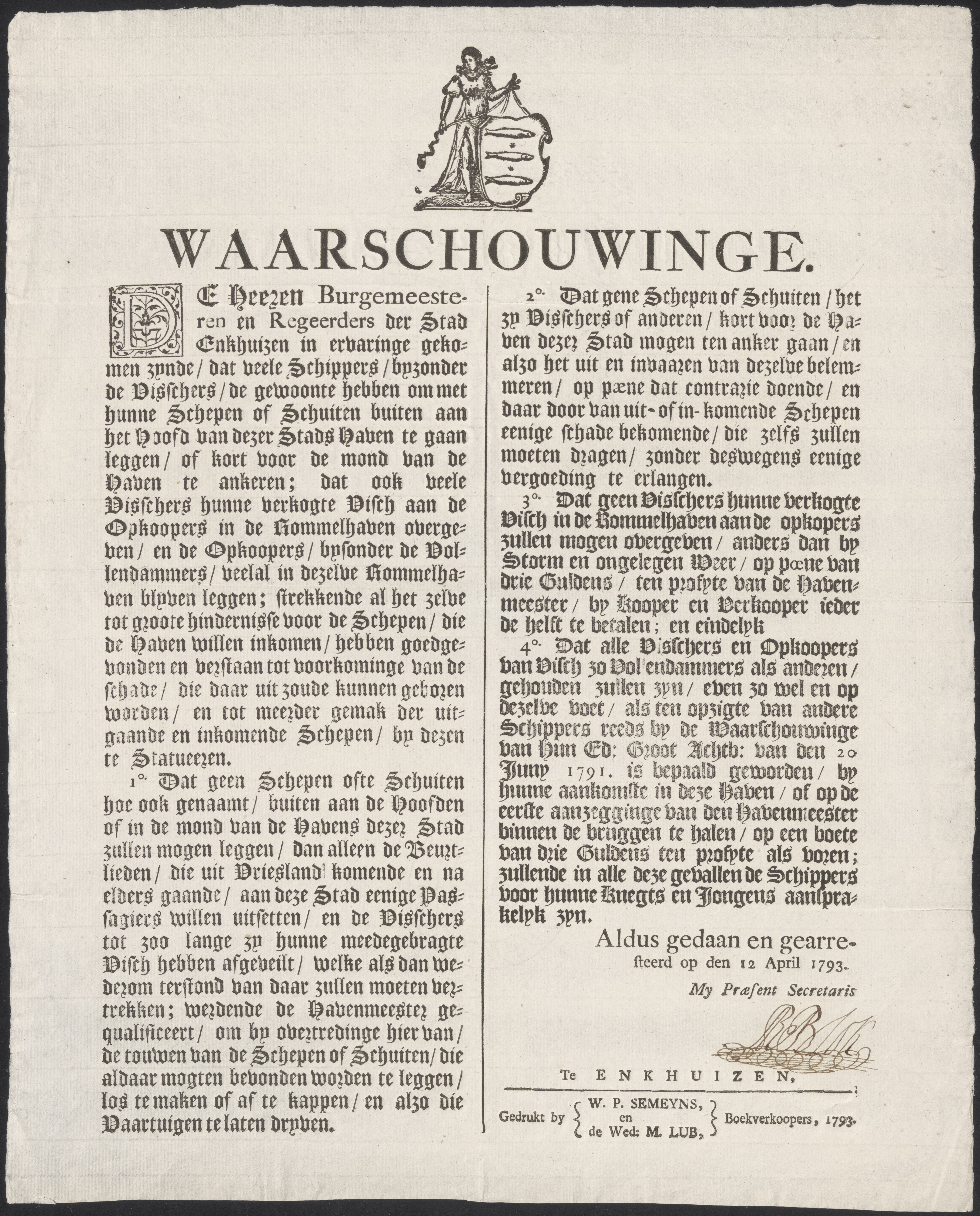 Aankondiging van De Heeren Twintigh Raaden der Stadt...