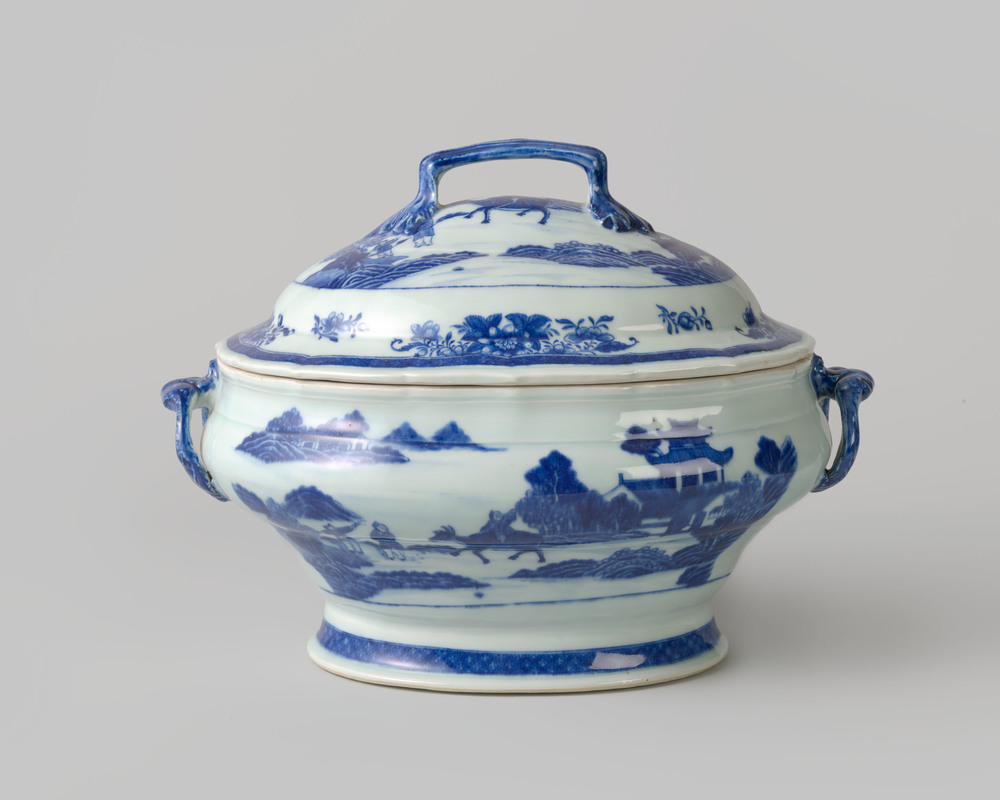 Terrine met deksel, behorende tot een Chinees, blauw...