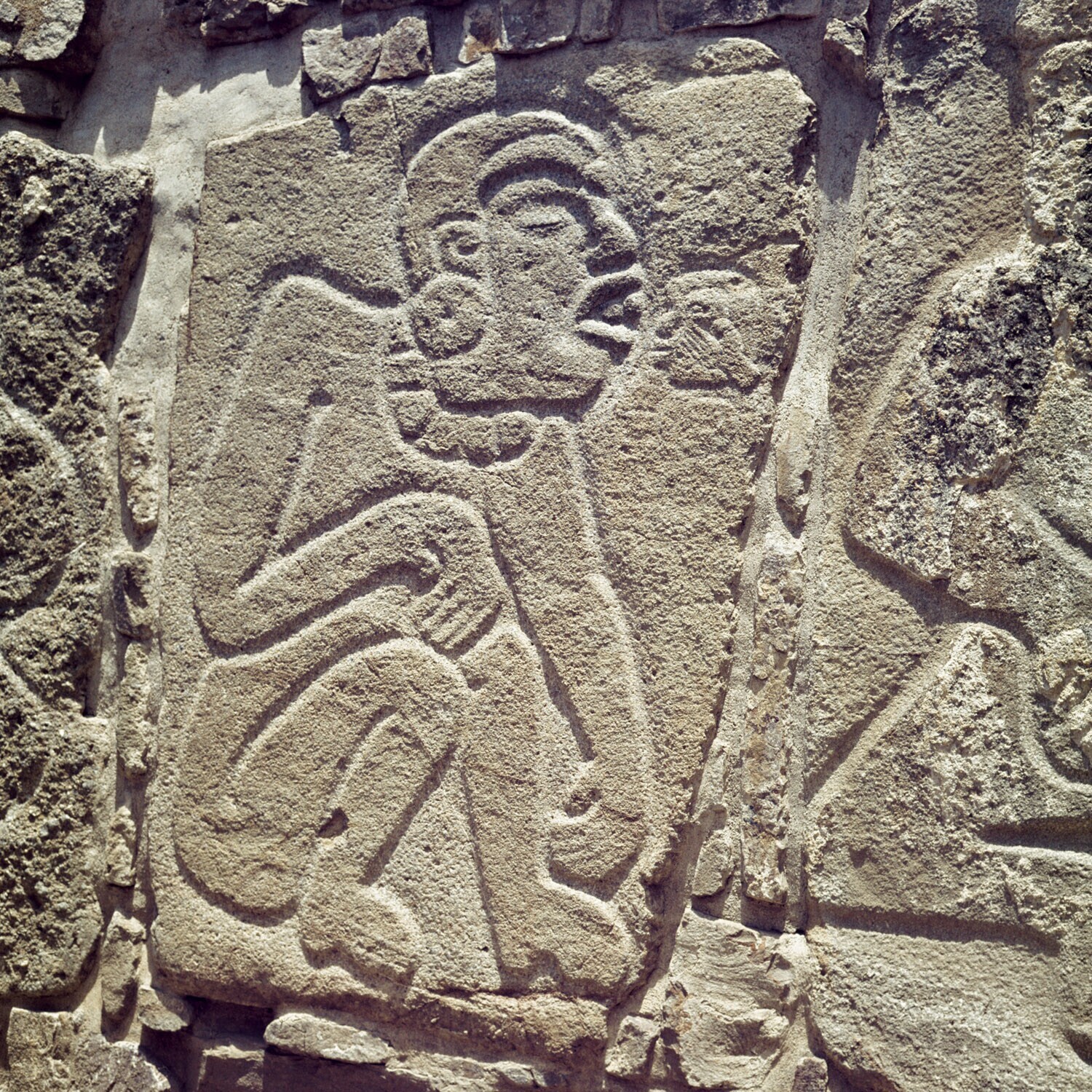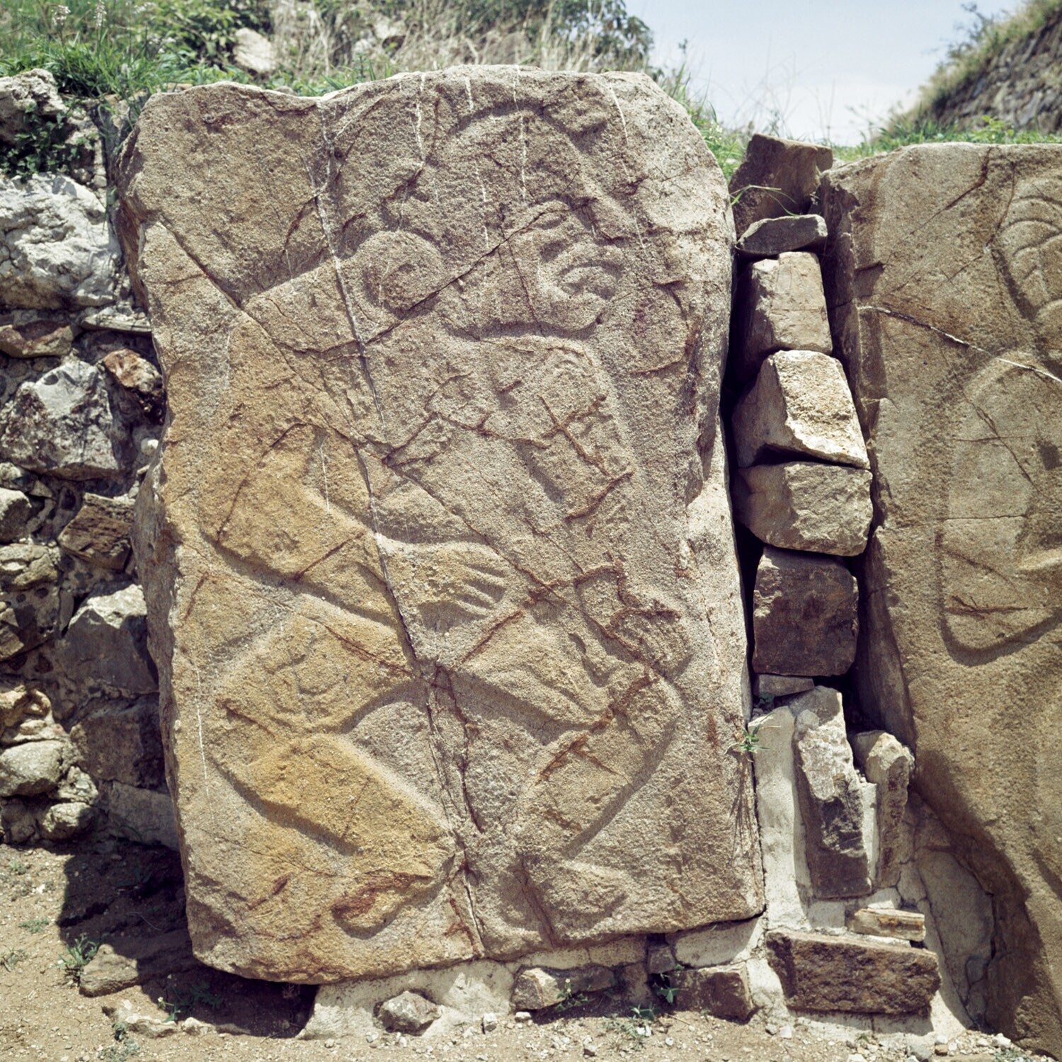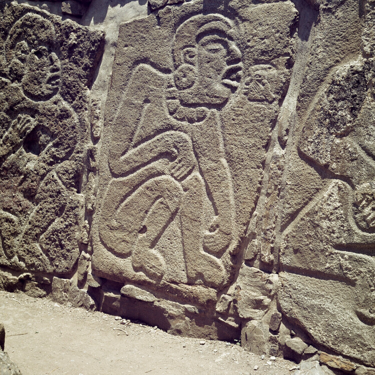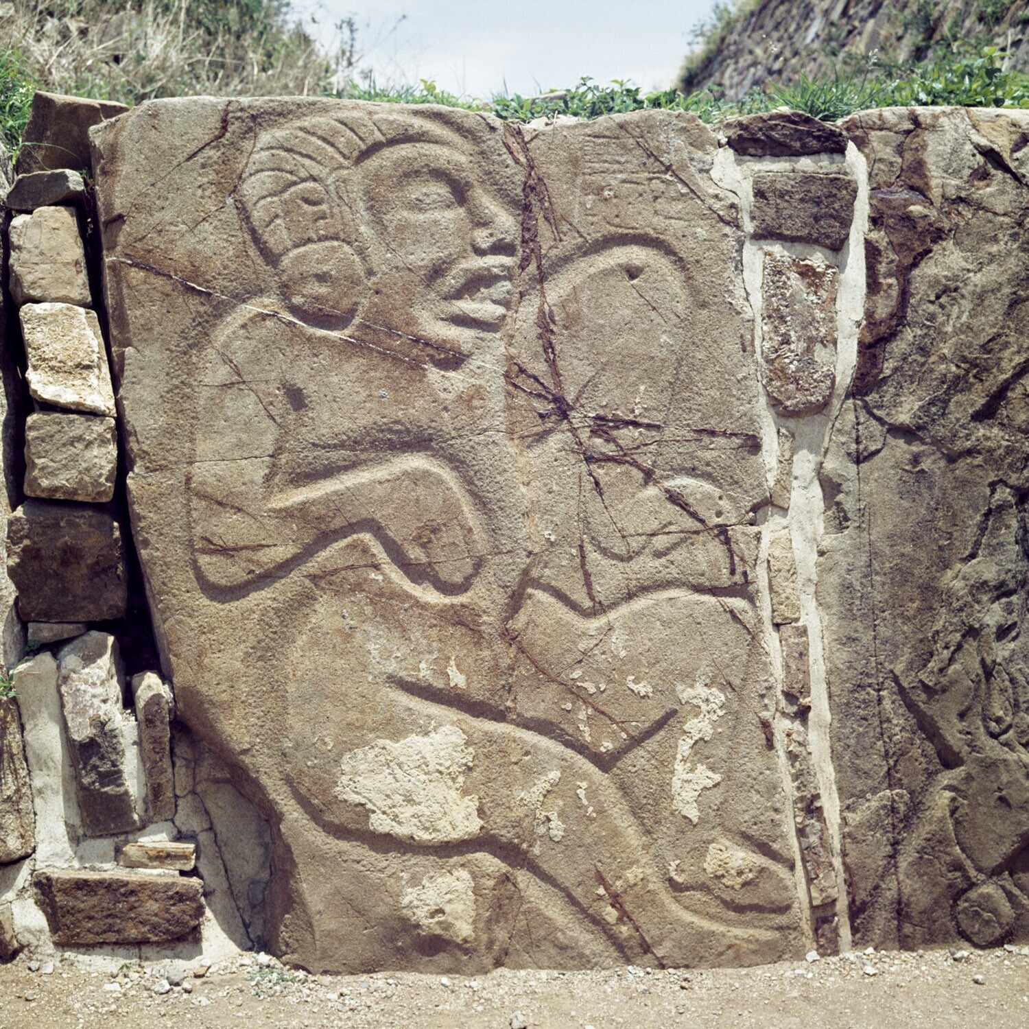 De ruines van Monte Alban.Details van de Los Danzant...