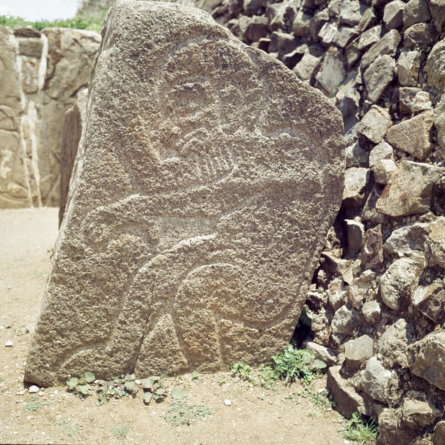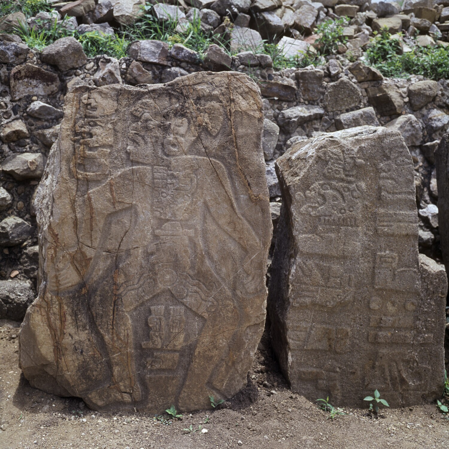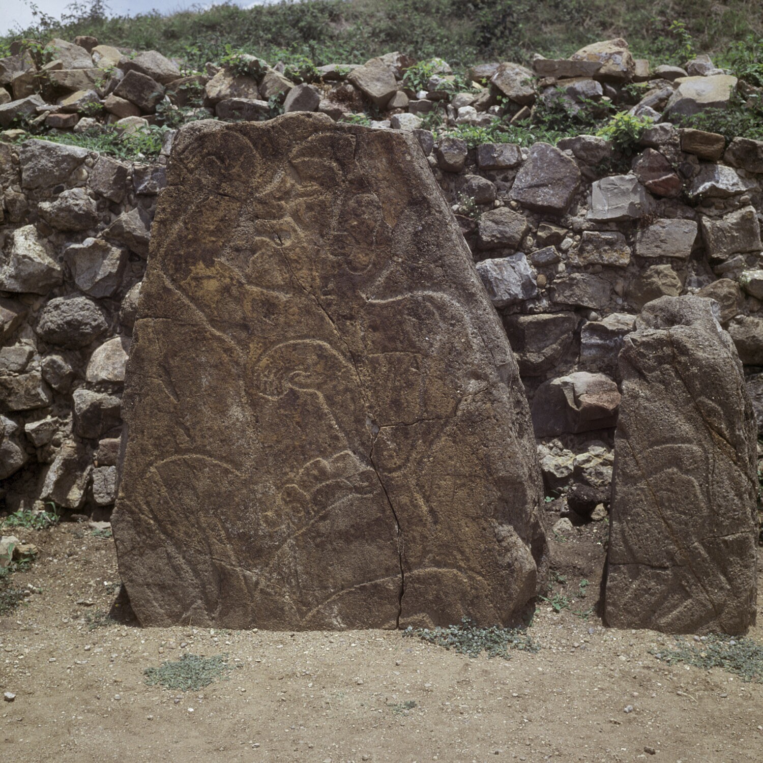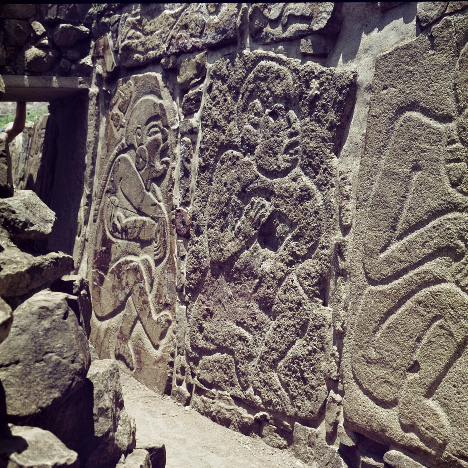 De ruines van Monte Alban.Details van de Los Danzant...