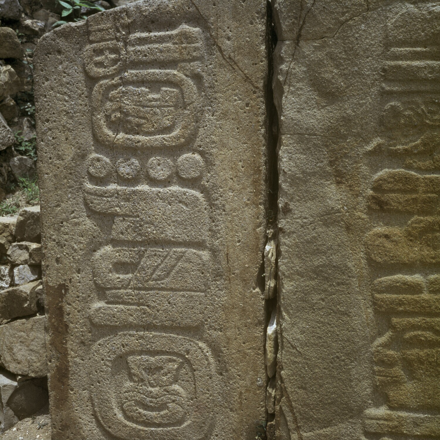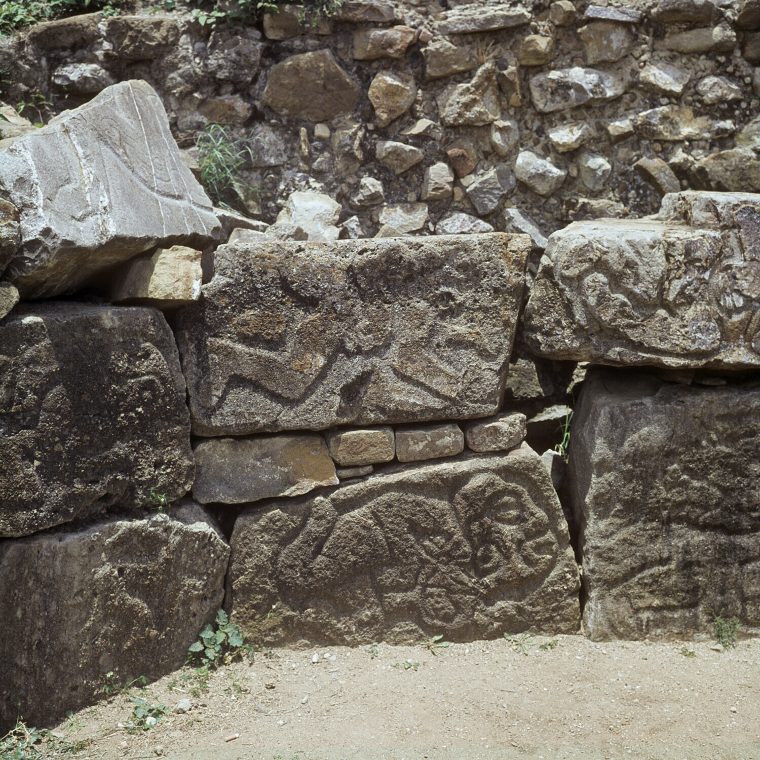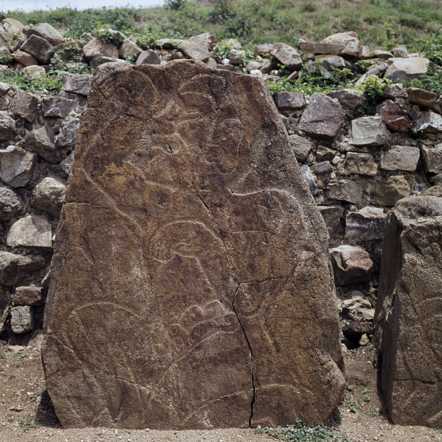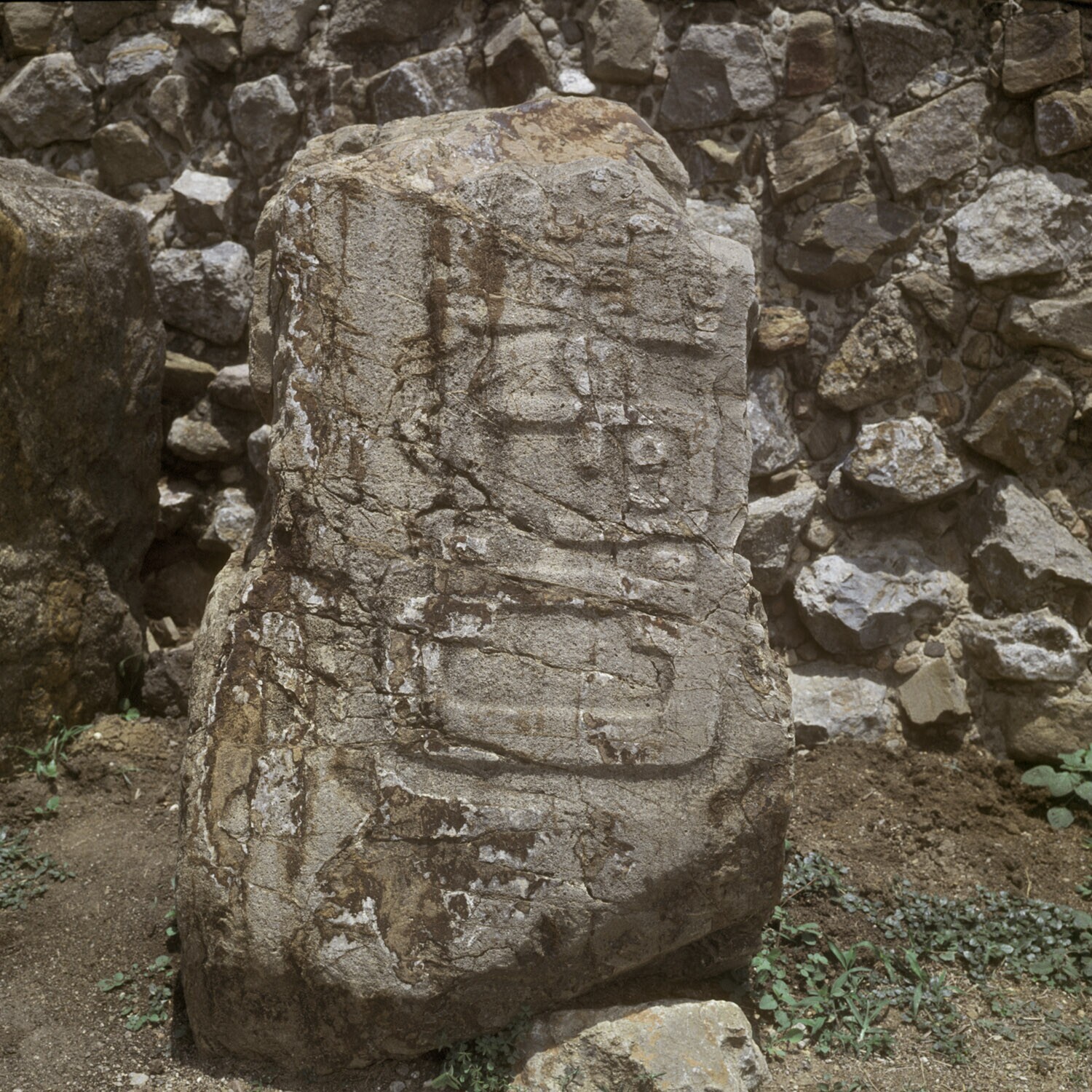 De ruines van Monte Alban.Details van de Los Danzant...
