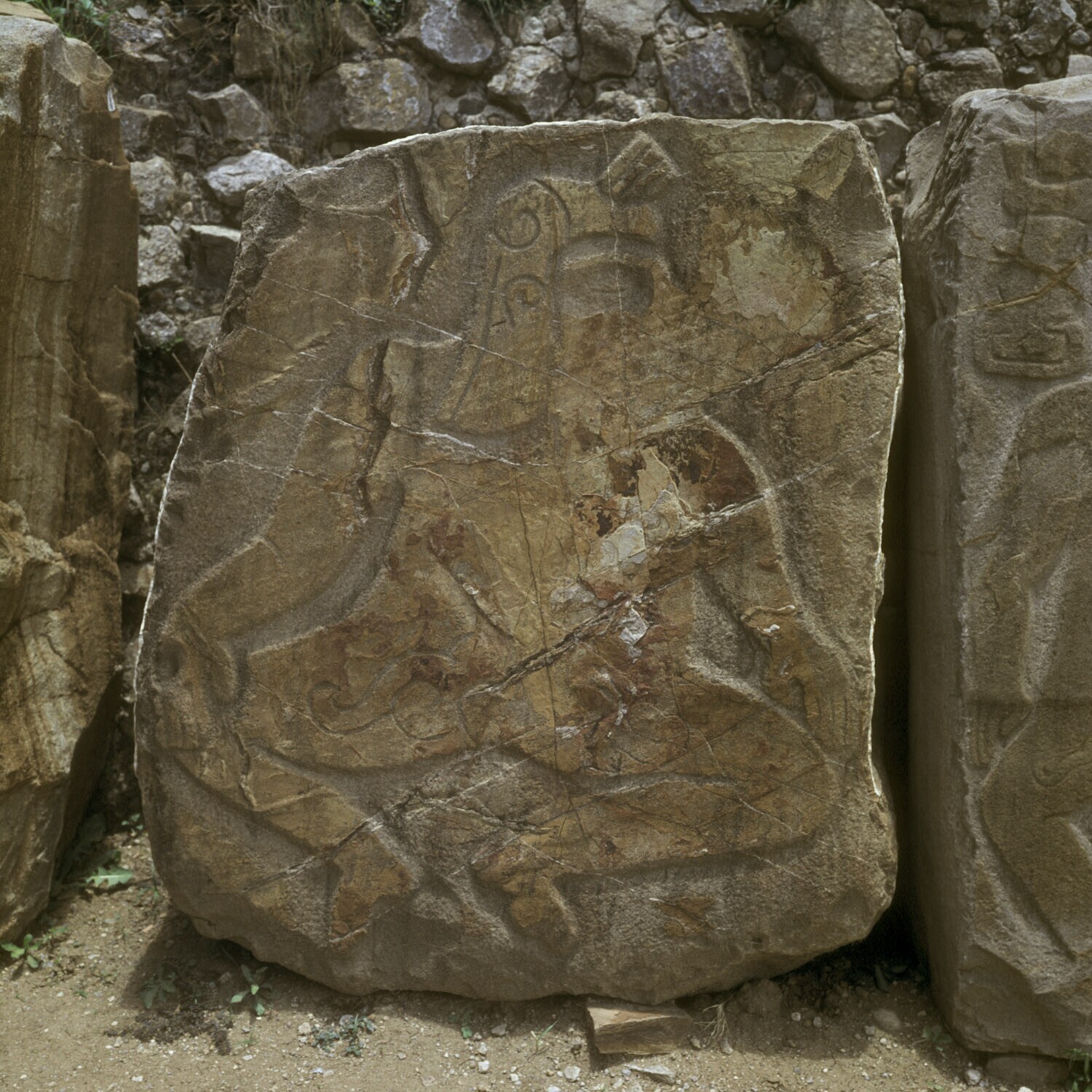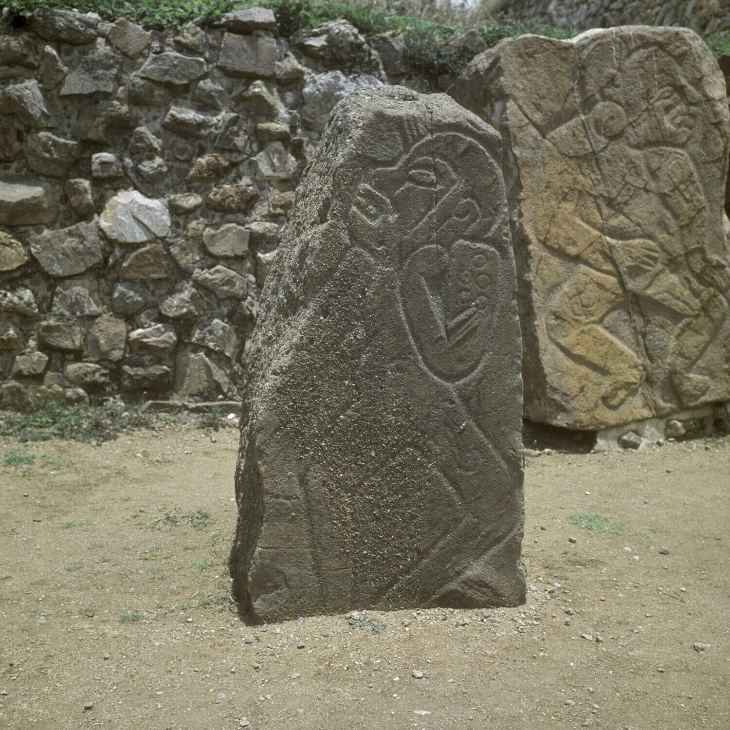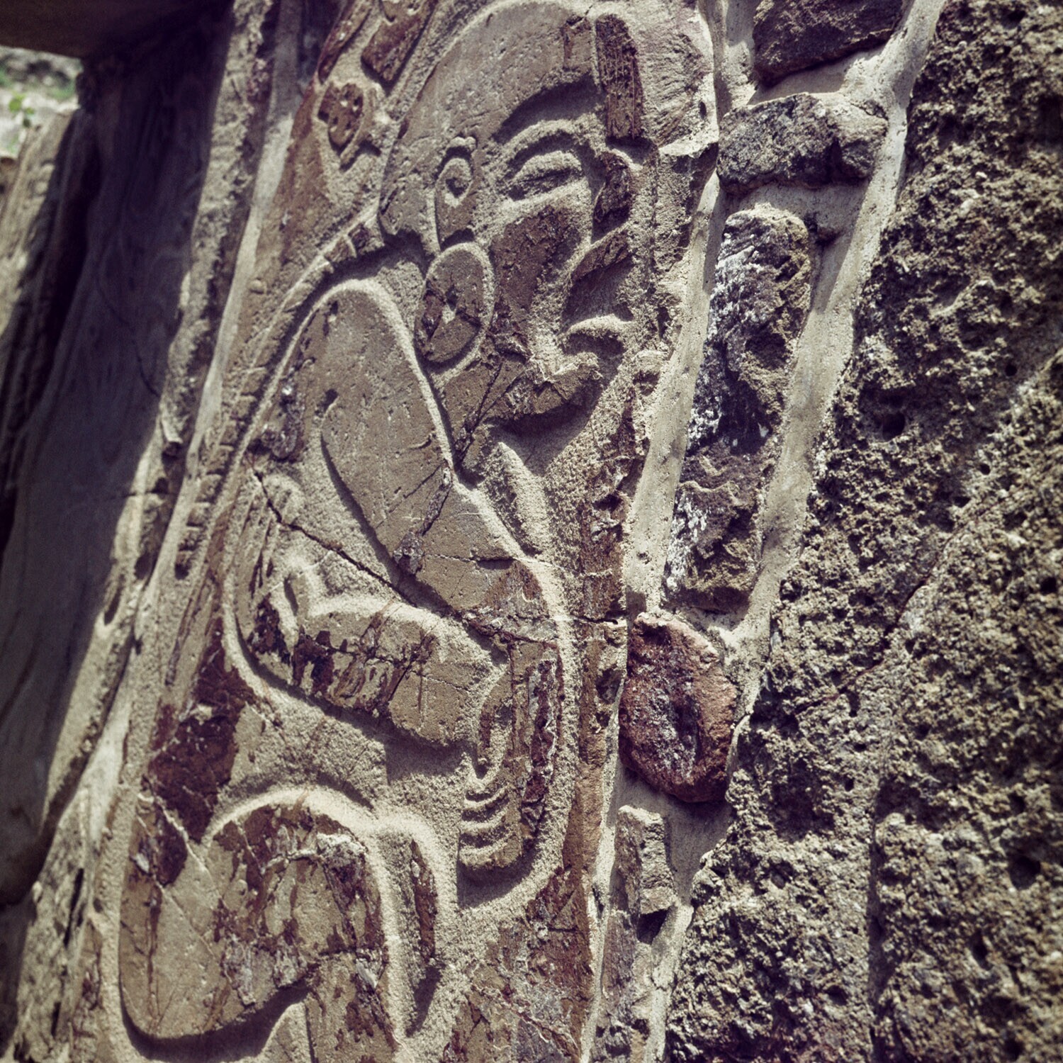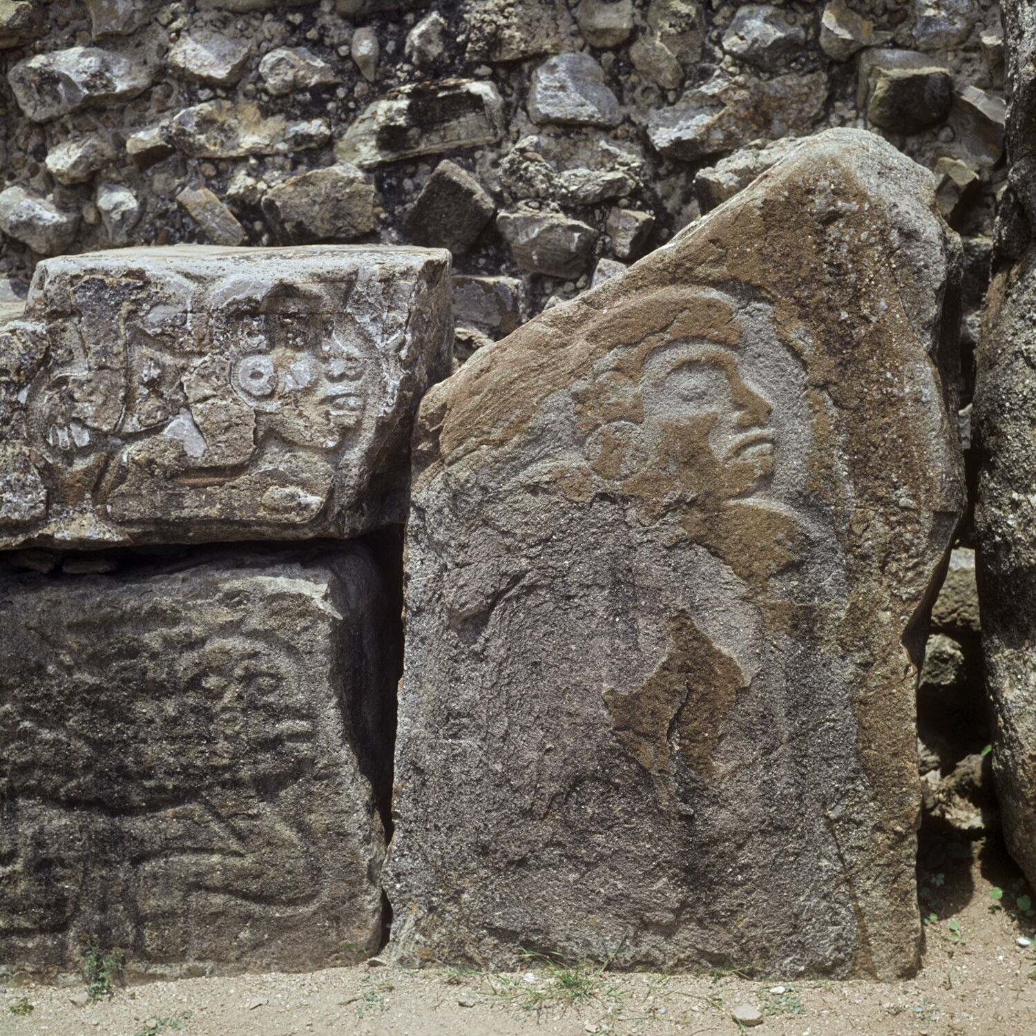 De ruines van Monte Alban.Details van de Los Danzant...