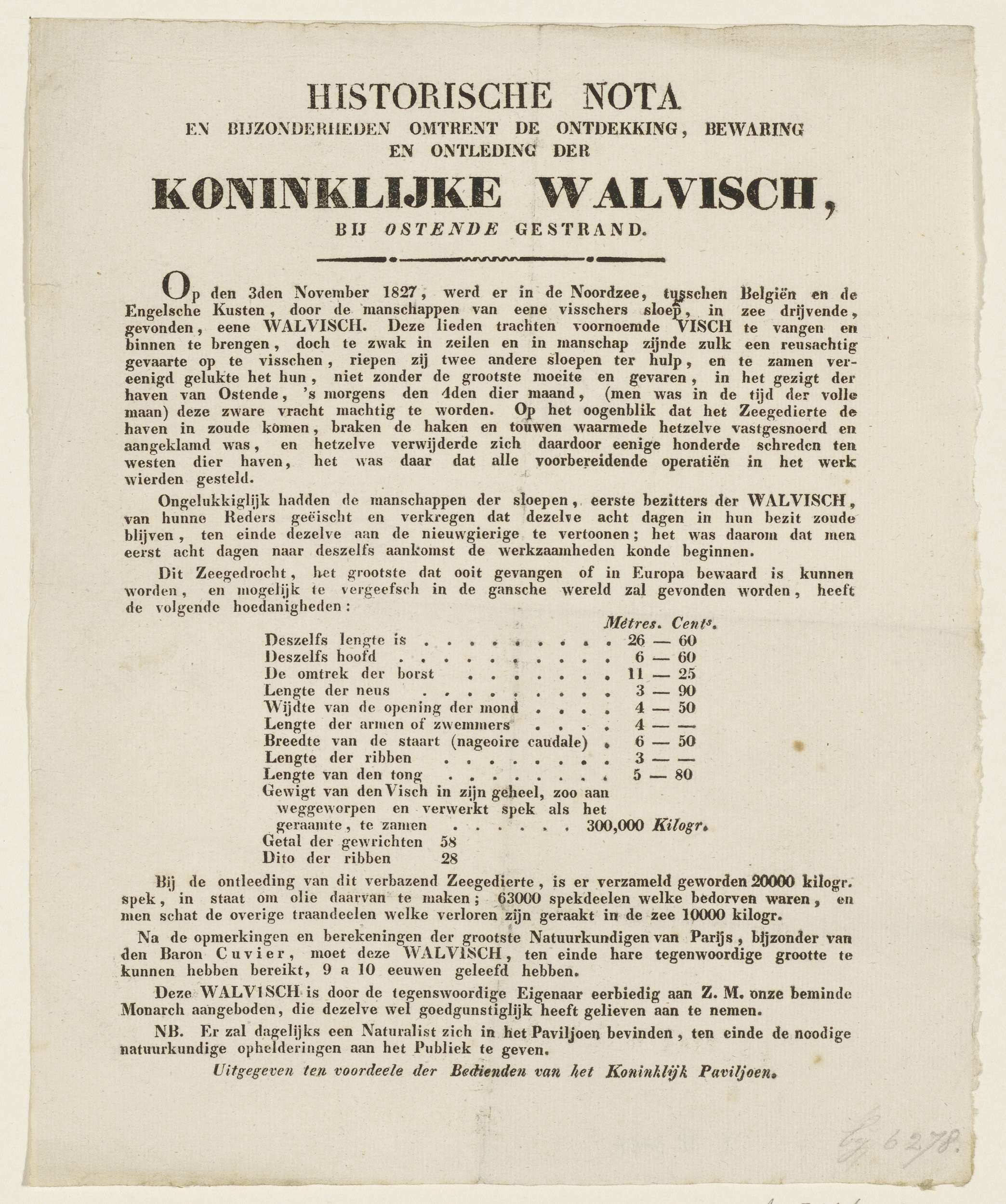 Informatieblad over het geraamte van de walvis in he...