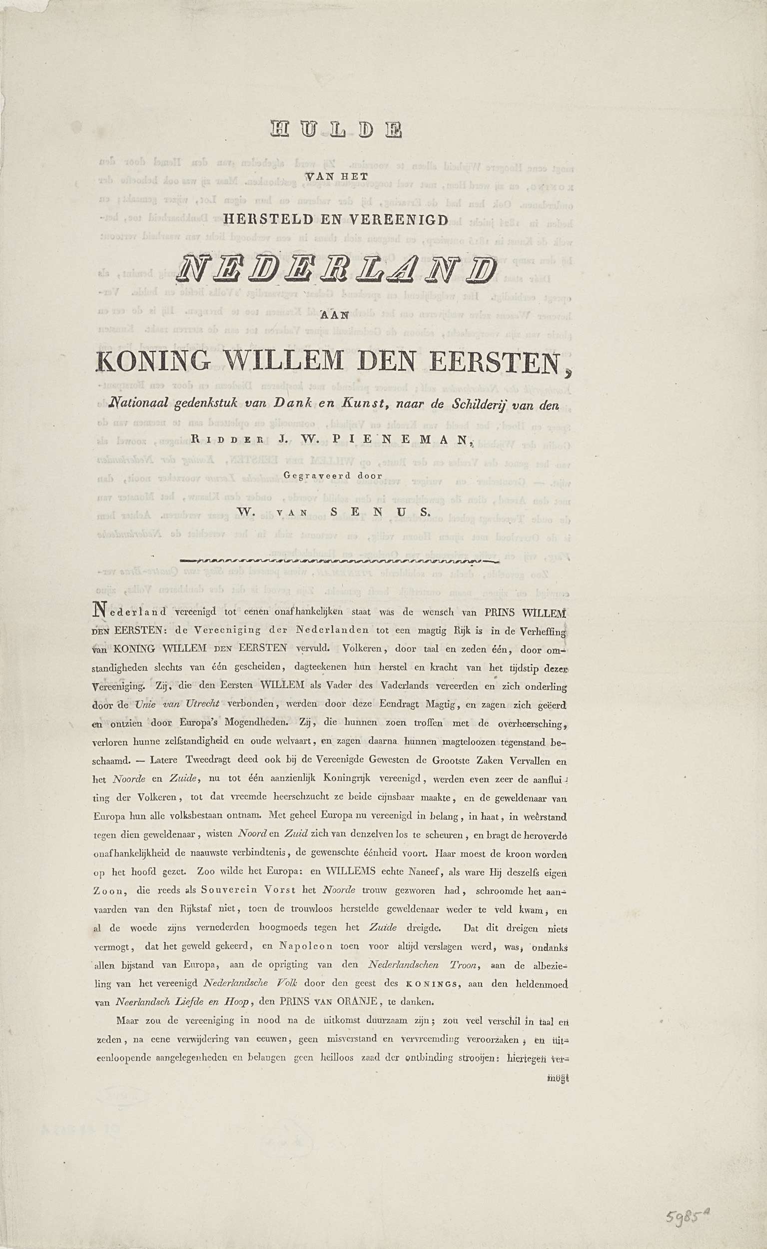 Verklaring bij de prent met het huldeblijk aan konin...