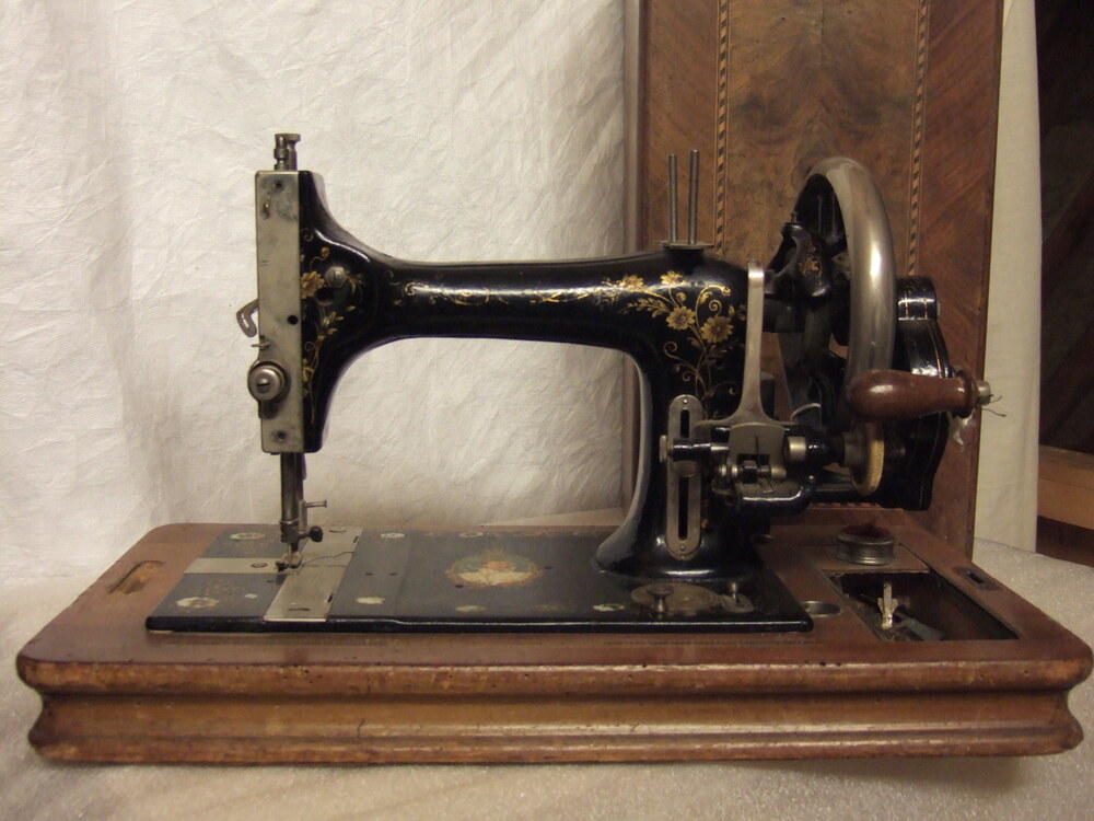 naaimachine in houten koffer, Duitsland circa 1900