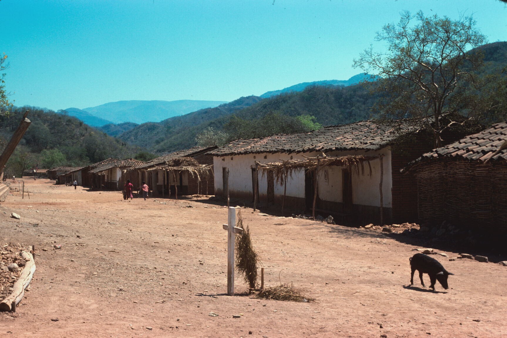 vrouwen in lokale dracht in dorpsstraat