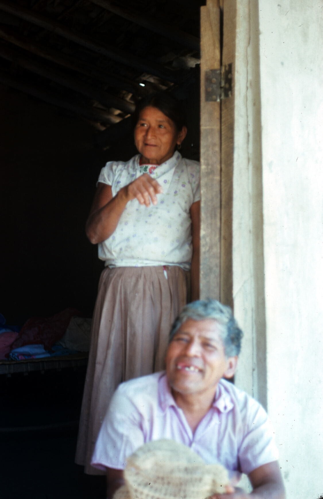 Doña Salomé Martínez voor deur van choza (hut)