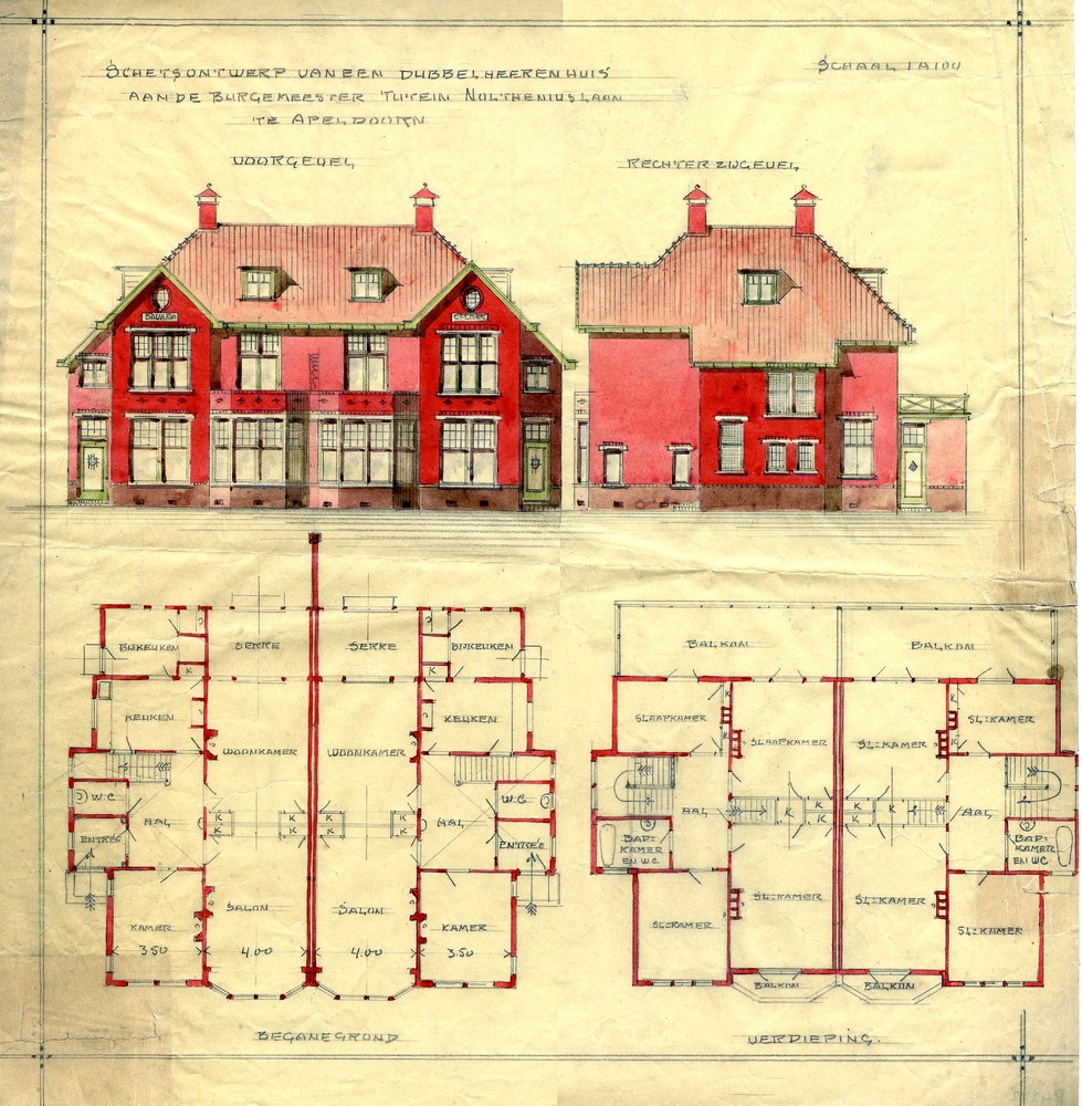 schetsontwerp van een dubbel heerenhuis aan de Burge...