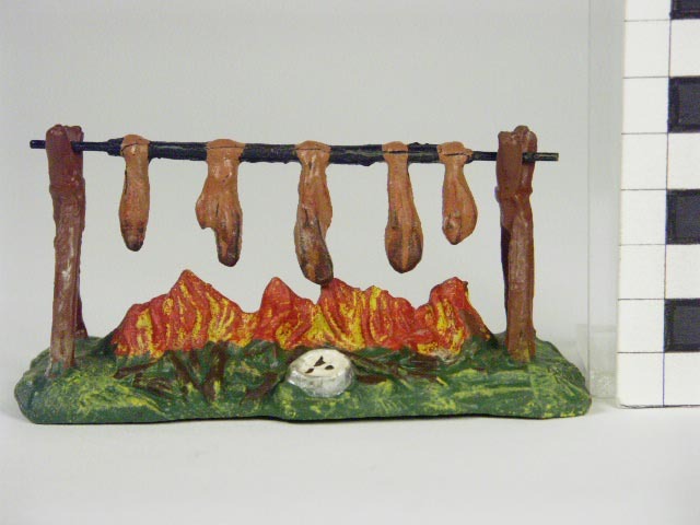 Miniatuur kampvuur met vlees