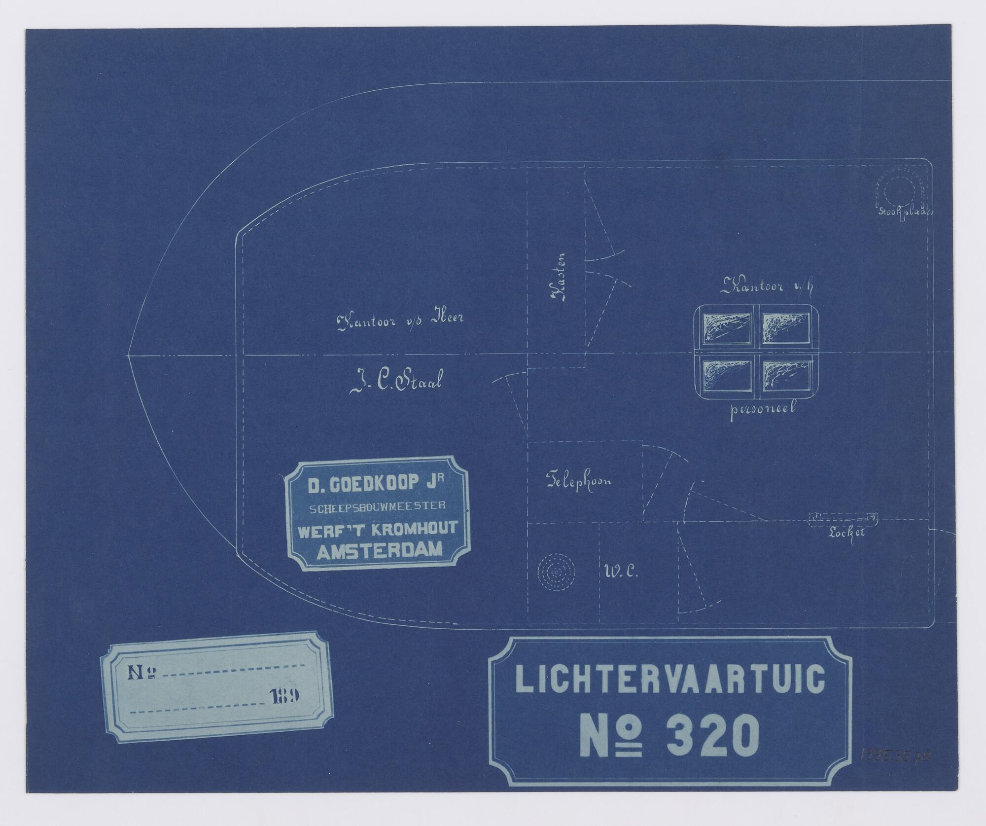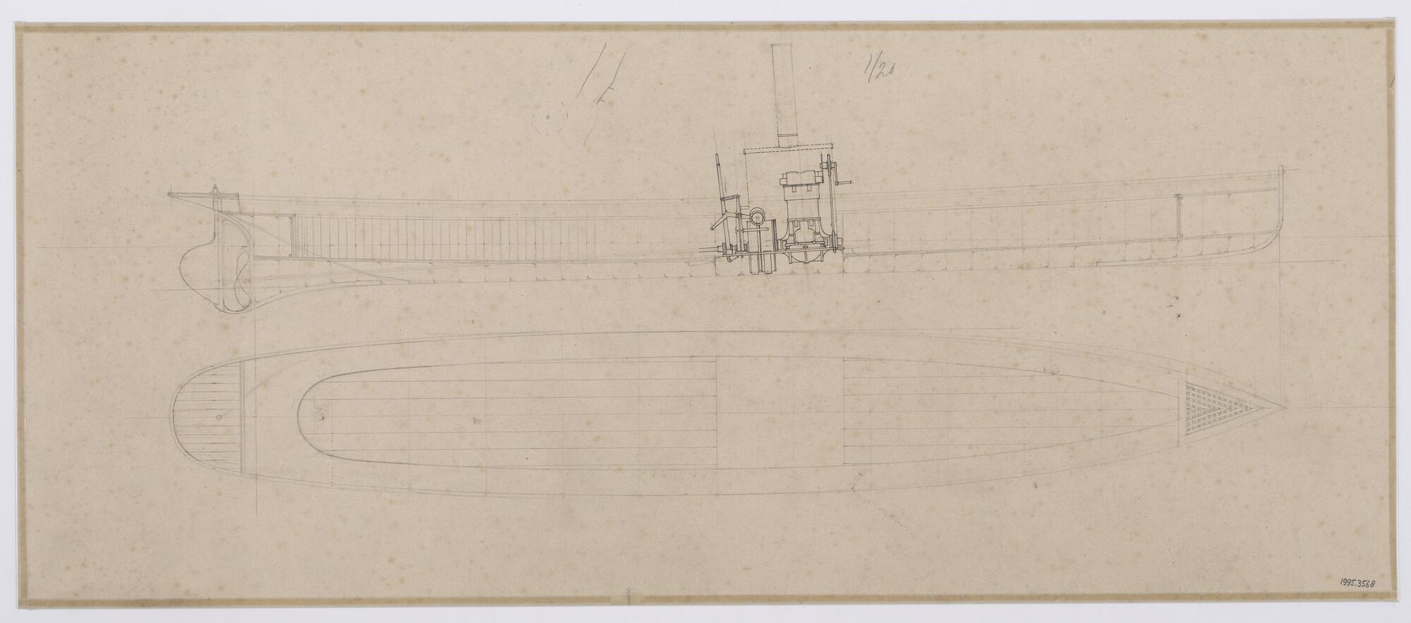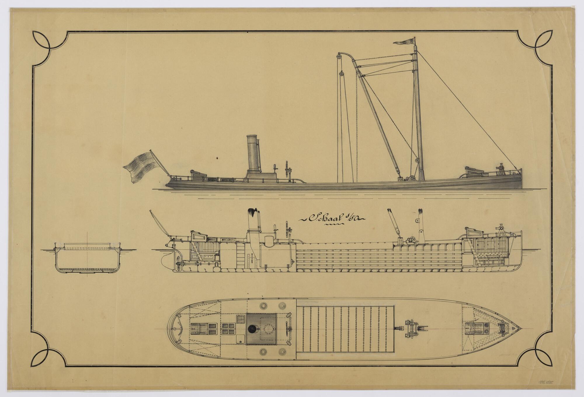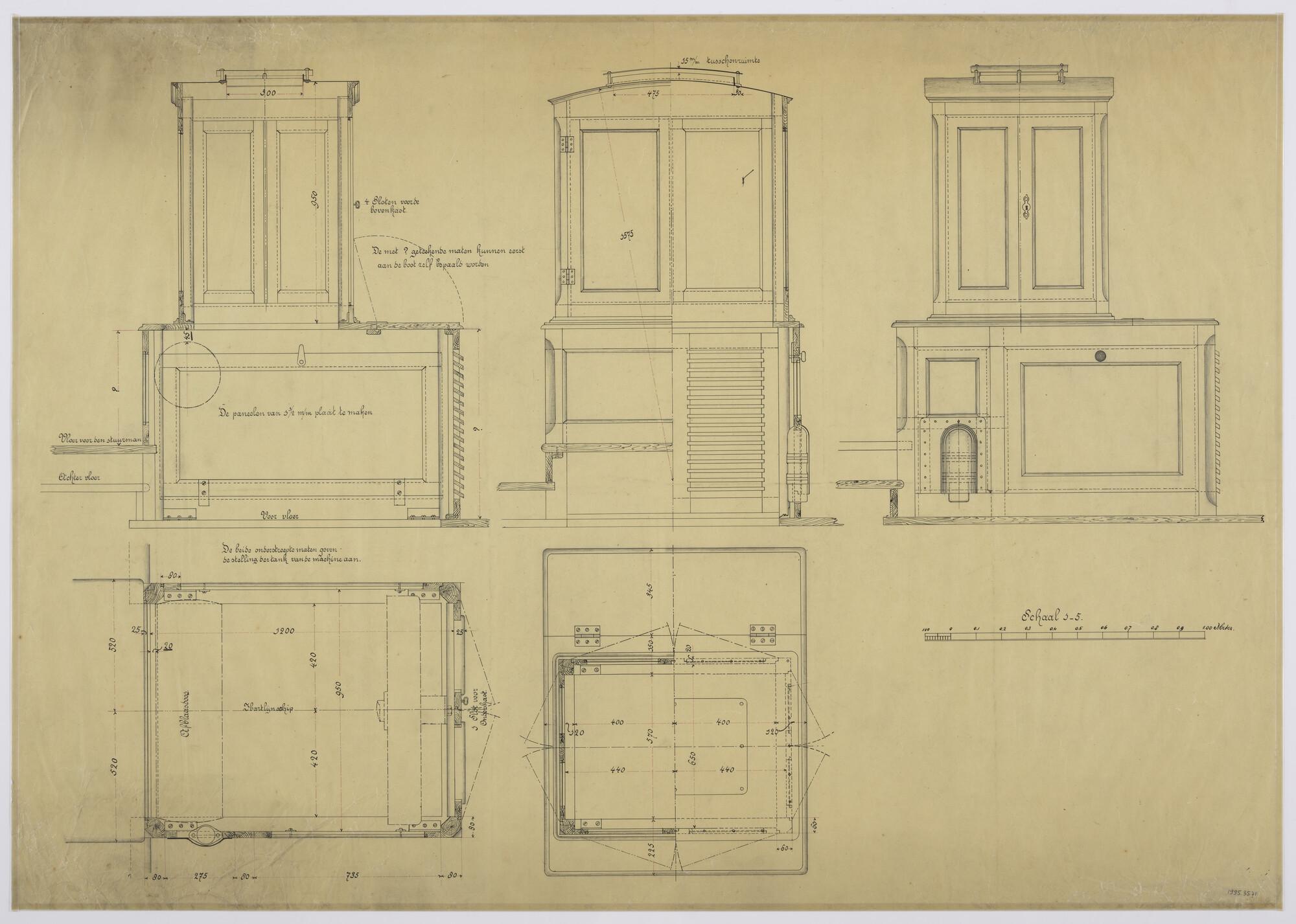 Algemeen plan met inbouw petroleummotor van sloep St...