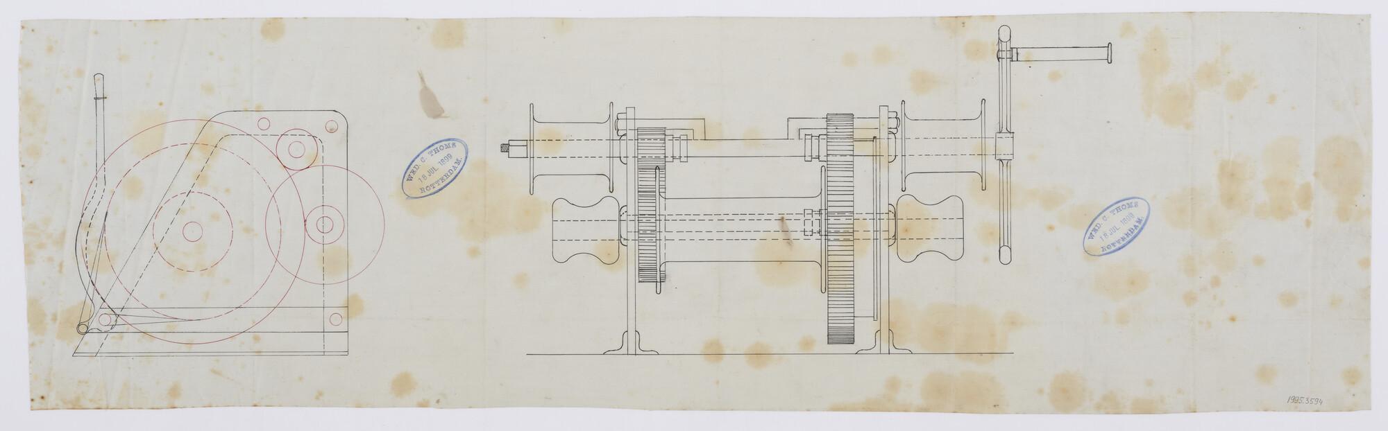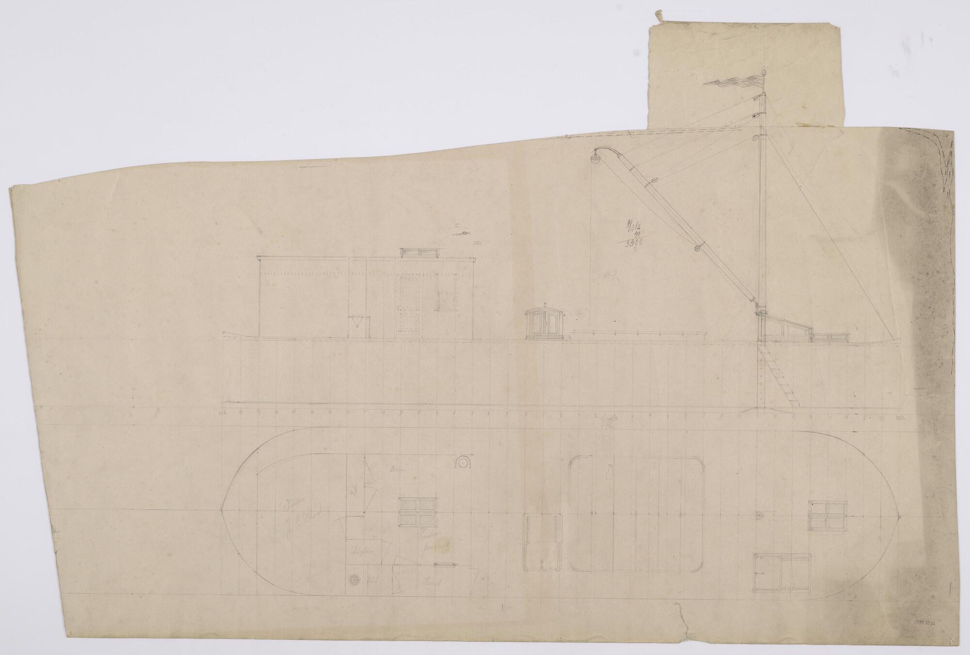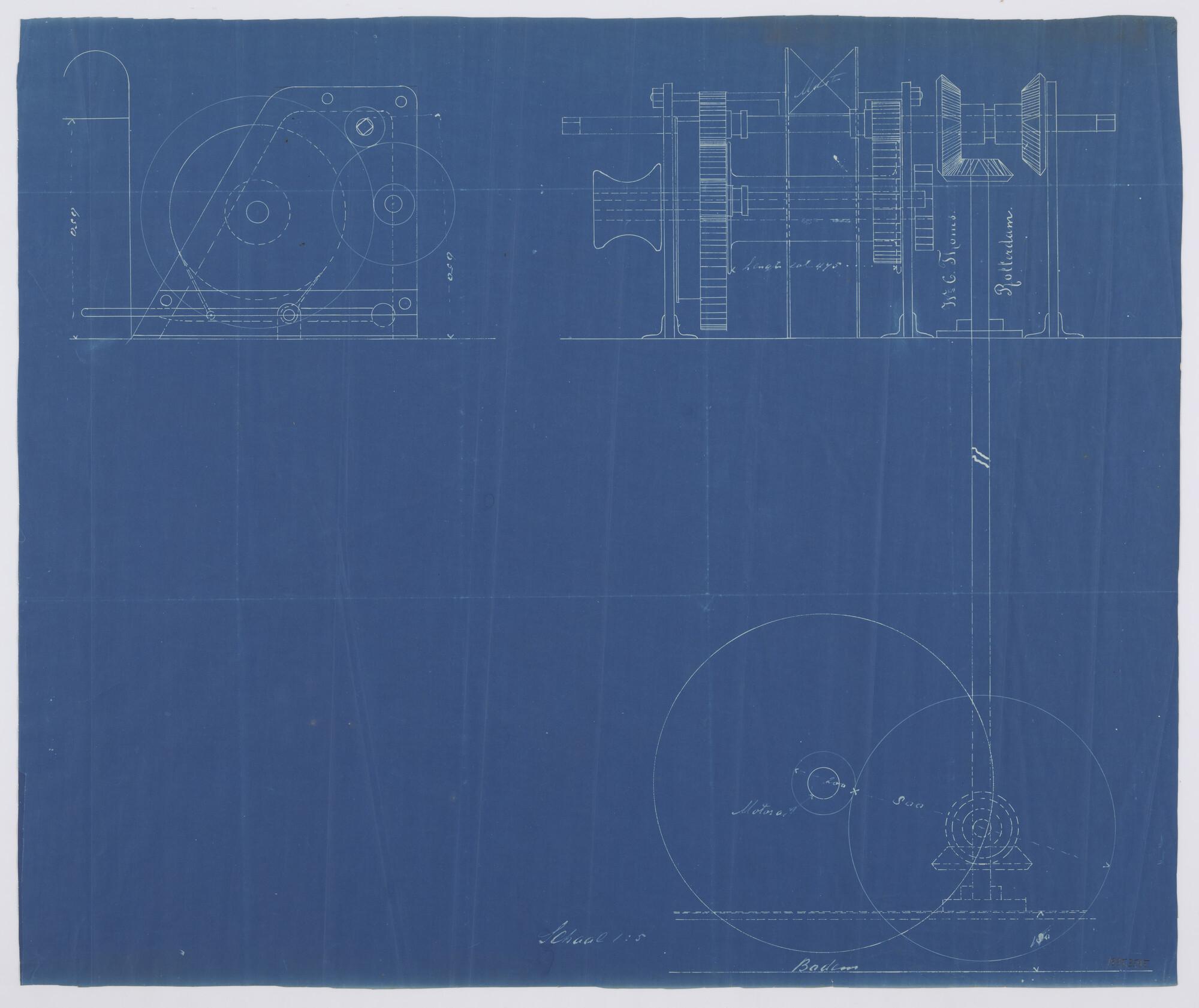 Schetsontwerp voor motorinbouw van de sloep Strekdam