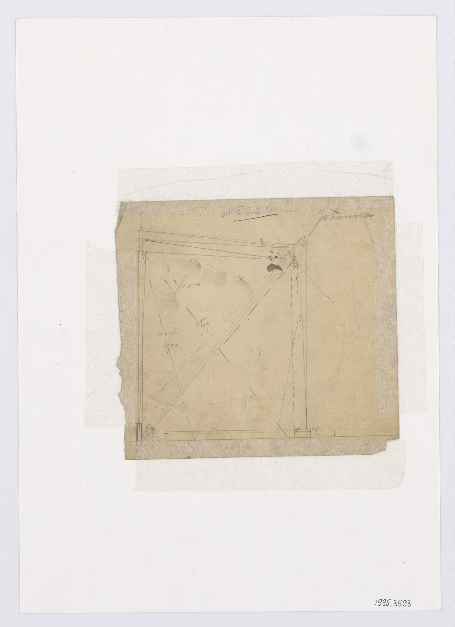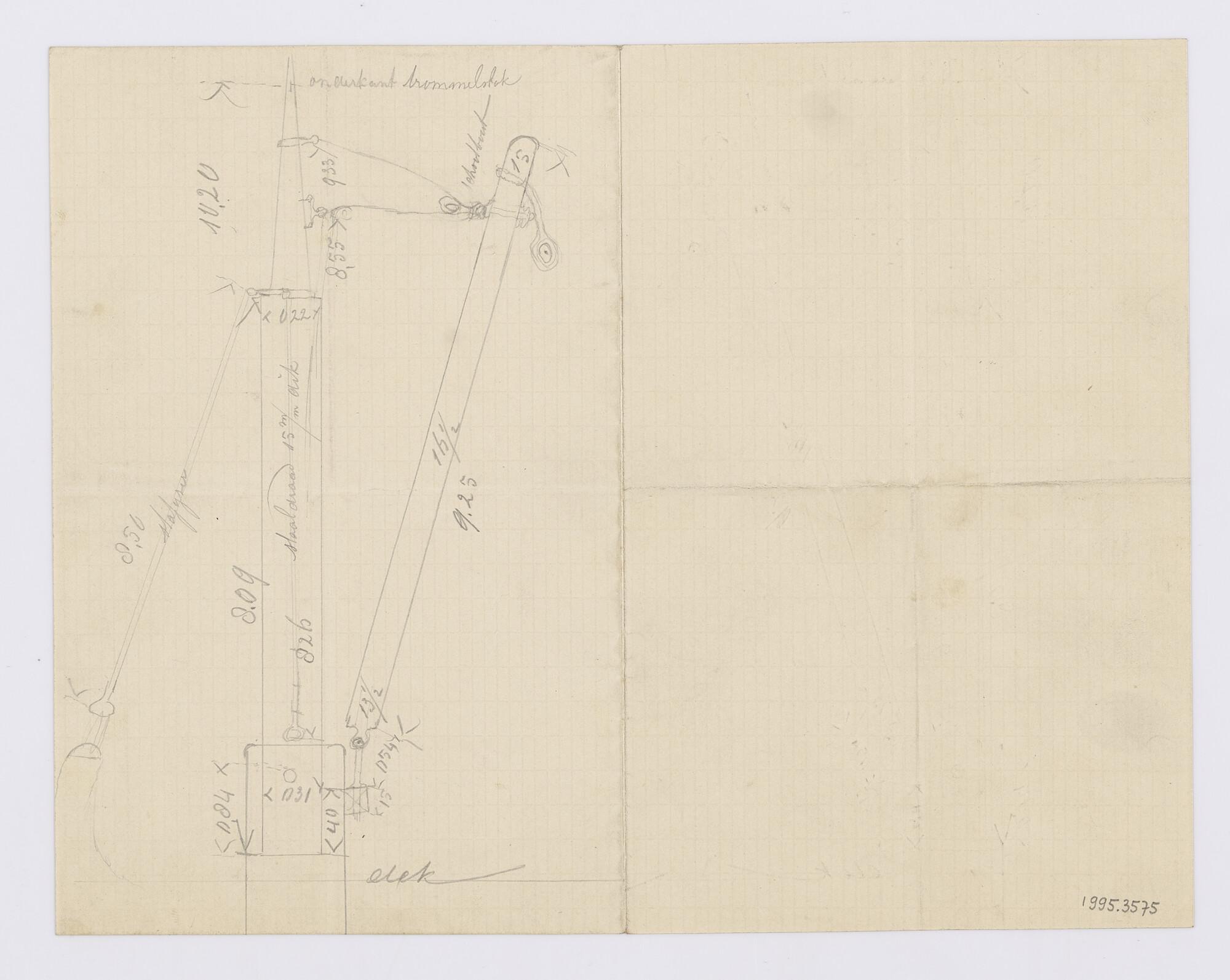 Schetsontwerp mast en laadboom van een lichter