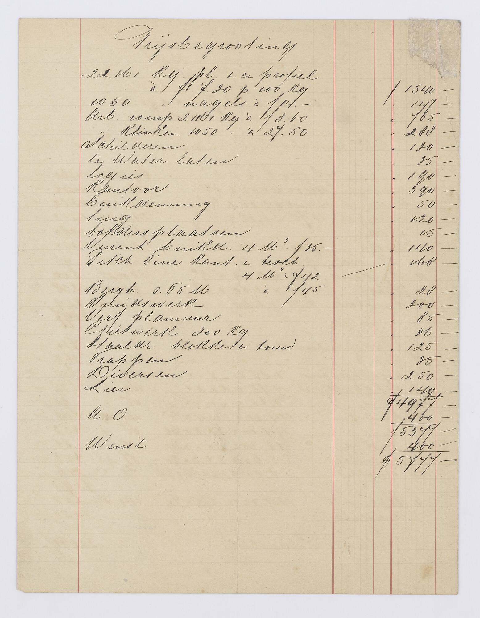 Gewichtsberekening en begroting voor een lichter
