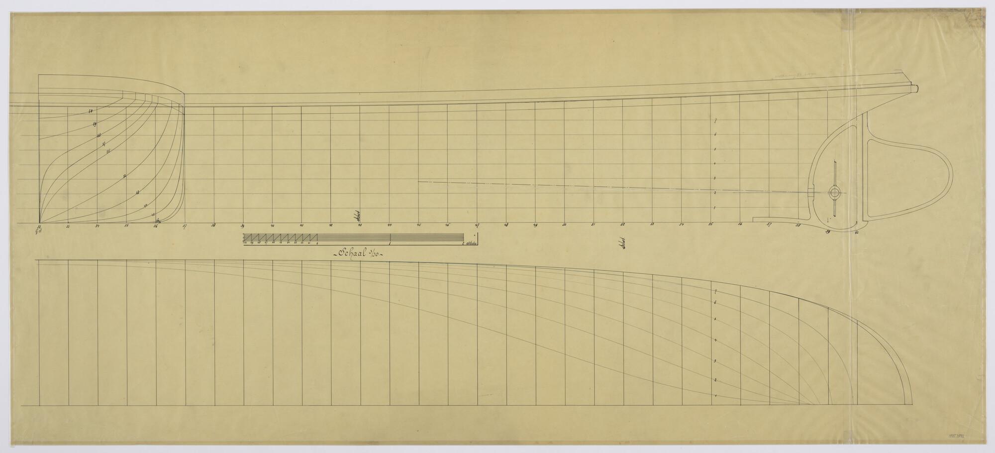 Lijnenplan achterschip van het vrachtschip ss. 'Joha...
