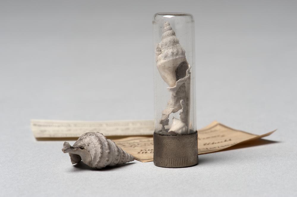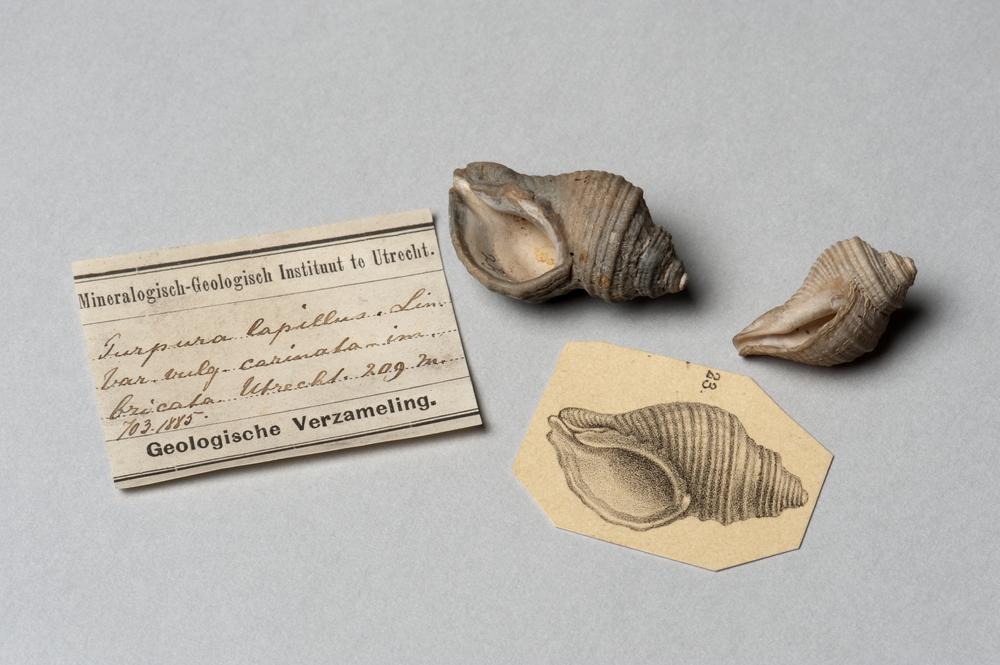 Fossiele purperslakken, Nucella lapillus, met beschr...