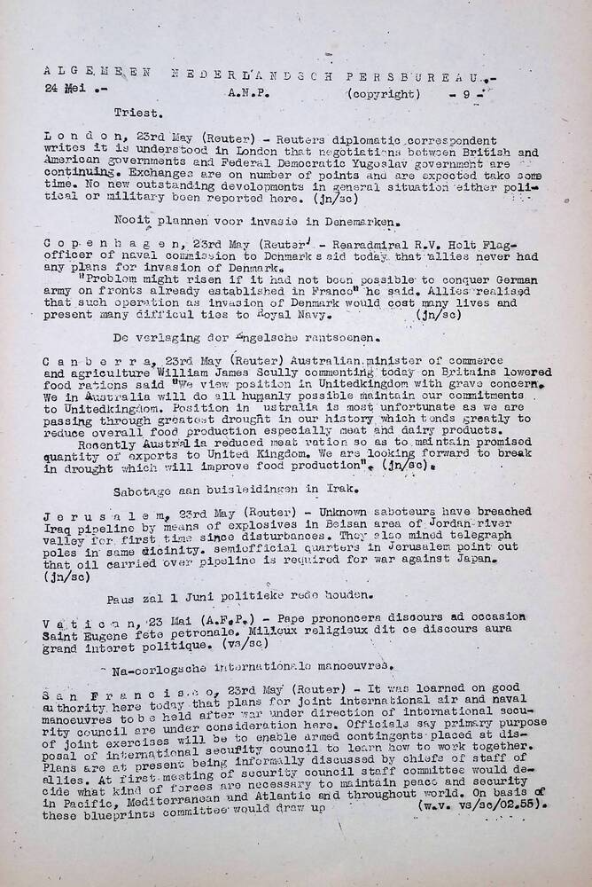 Algemeen Nederlandsch Persbureau, mededelingen, 24 m...