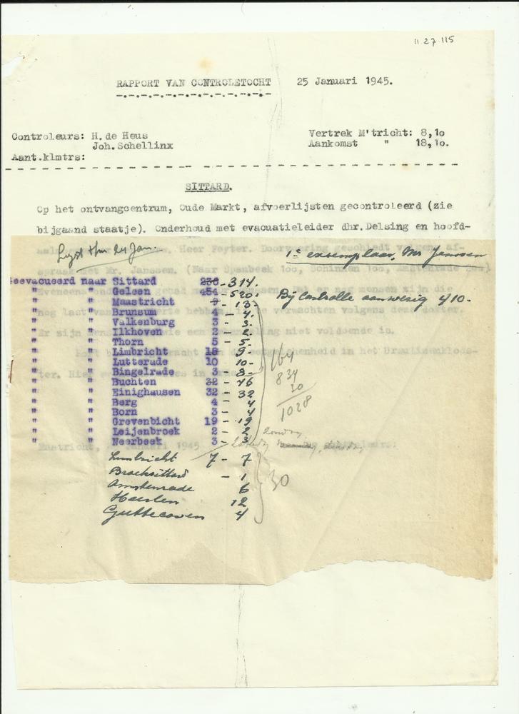 Rapport 25 januari 1945 bezoek Sittard door J. Schel...