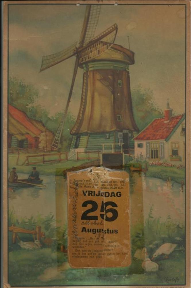 Molen met daarop kaarten ´vrijdag 25 augustus 1939´,...