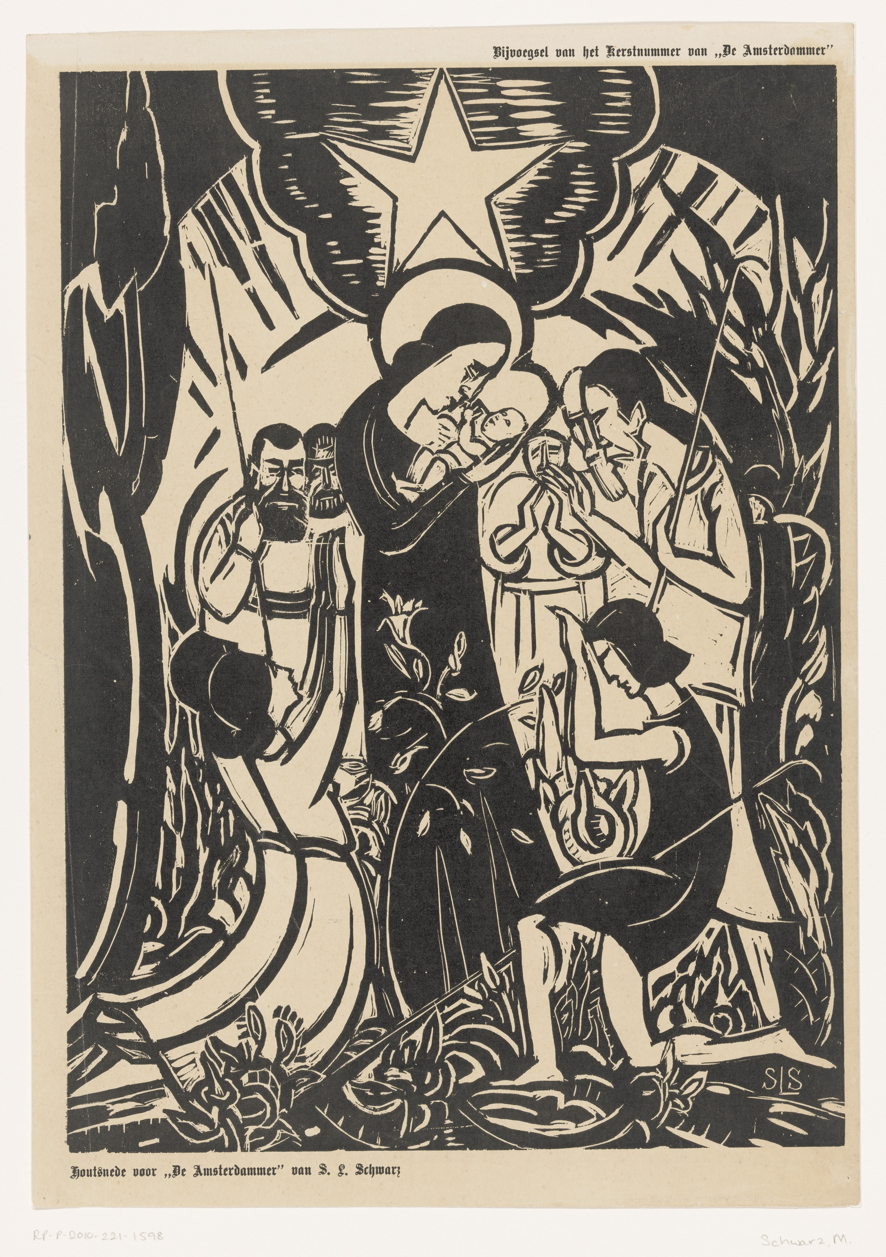 Nieuwjaarsprent met het Christuskind in een hart omr...
