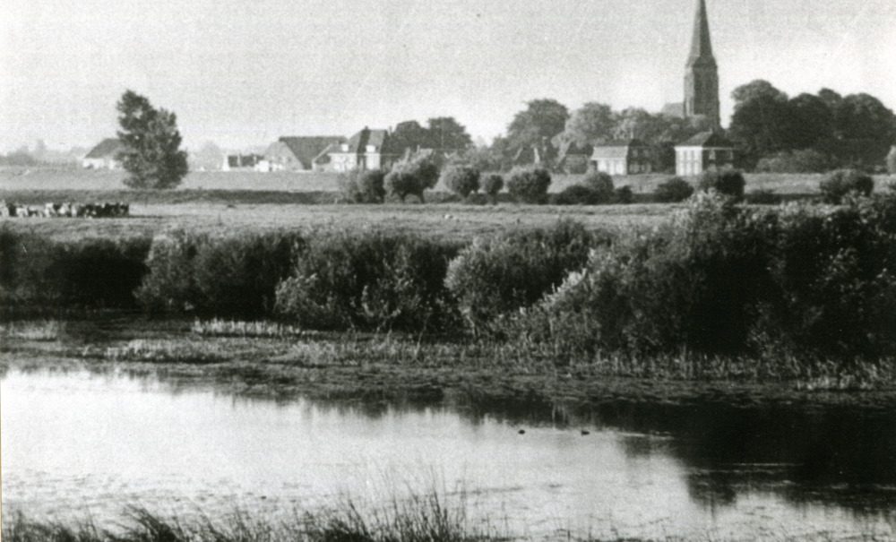 Zwart-wit foto van het uitzicht vanaf de Aerdtsebrug...