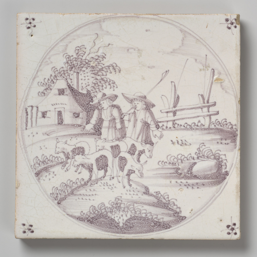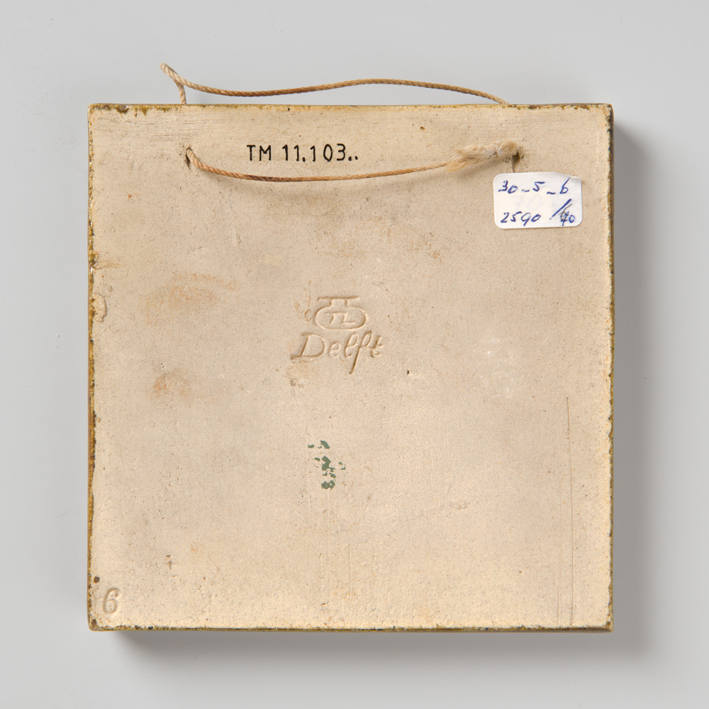 tegel van aardewerk met tinglazuur, voorstellende: l...