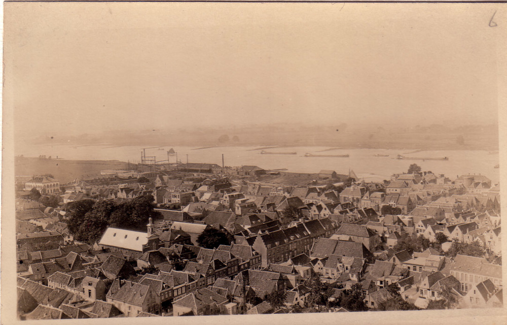 Luchtfoto van de kom van Huissen ,met Stadswal met F...