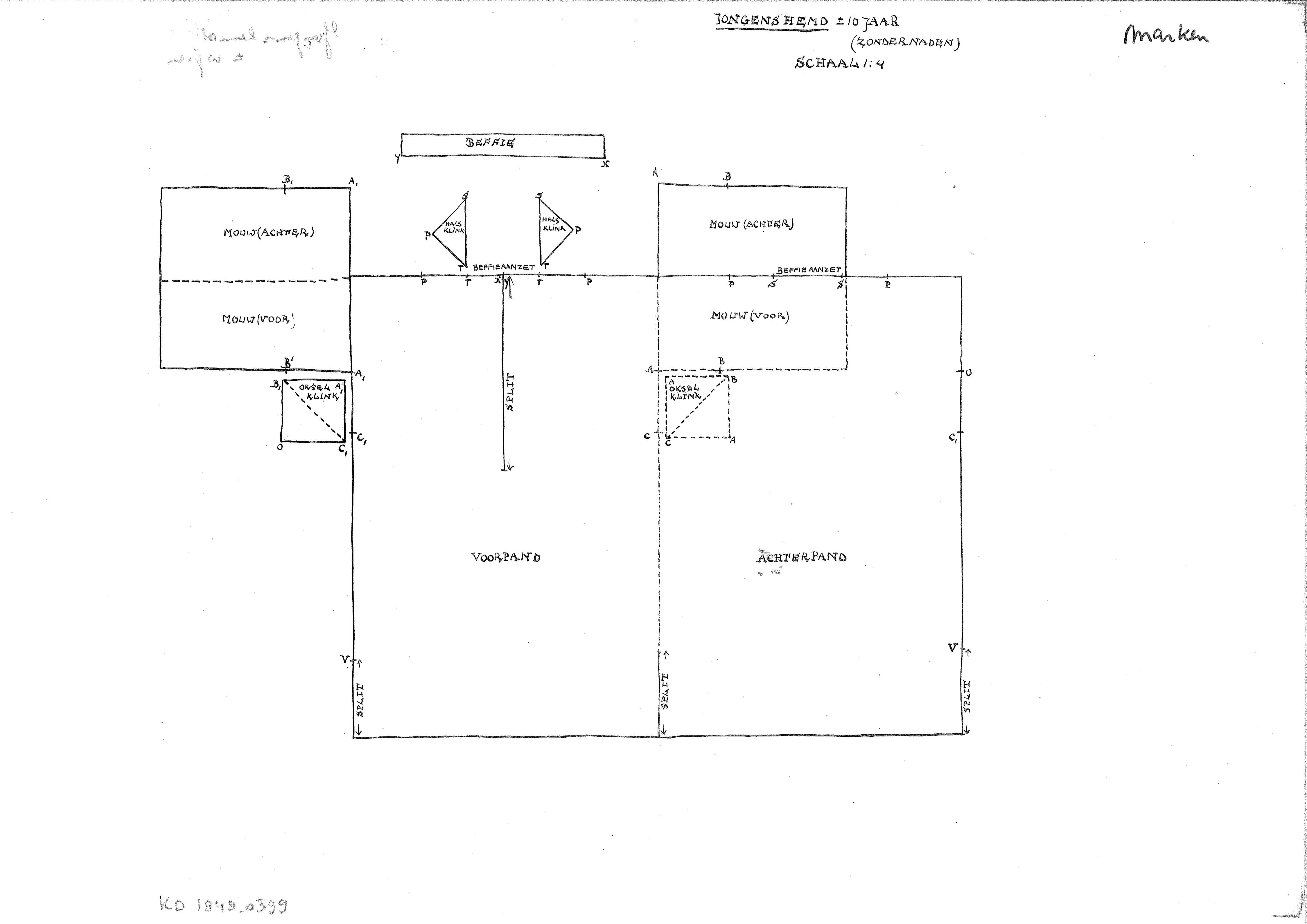 Patroontekening van een jongenshemd, Marken (patroon...