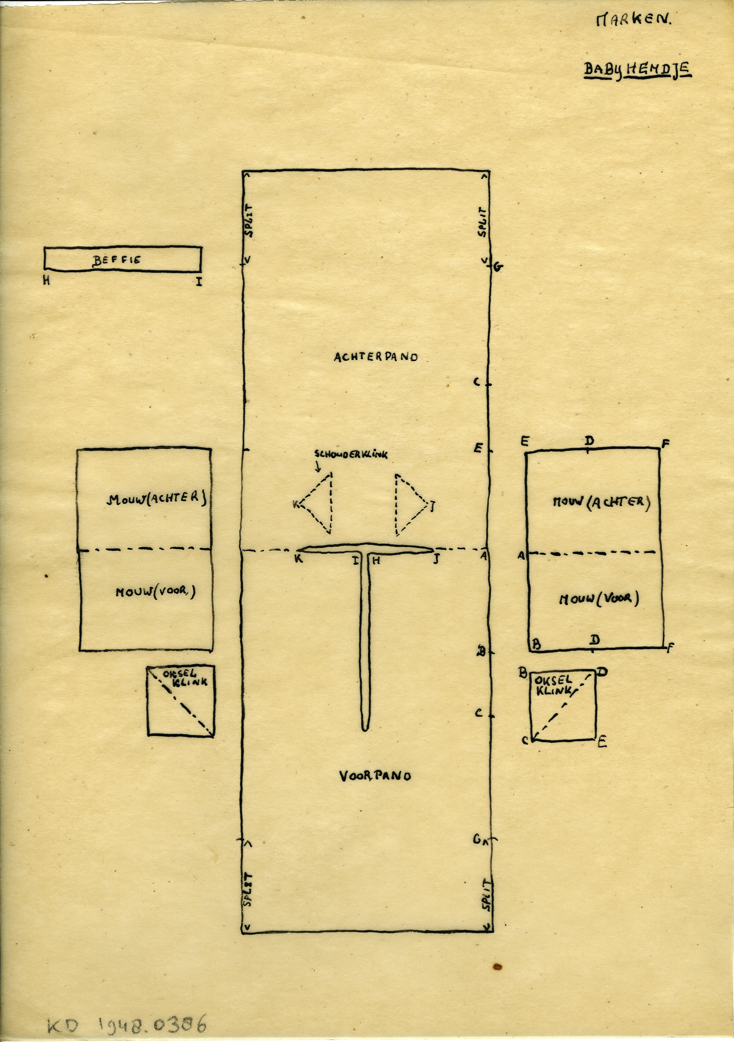 Patroontekening van een babyhemdje, Marken (patroont...