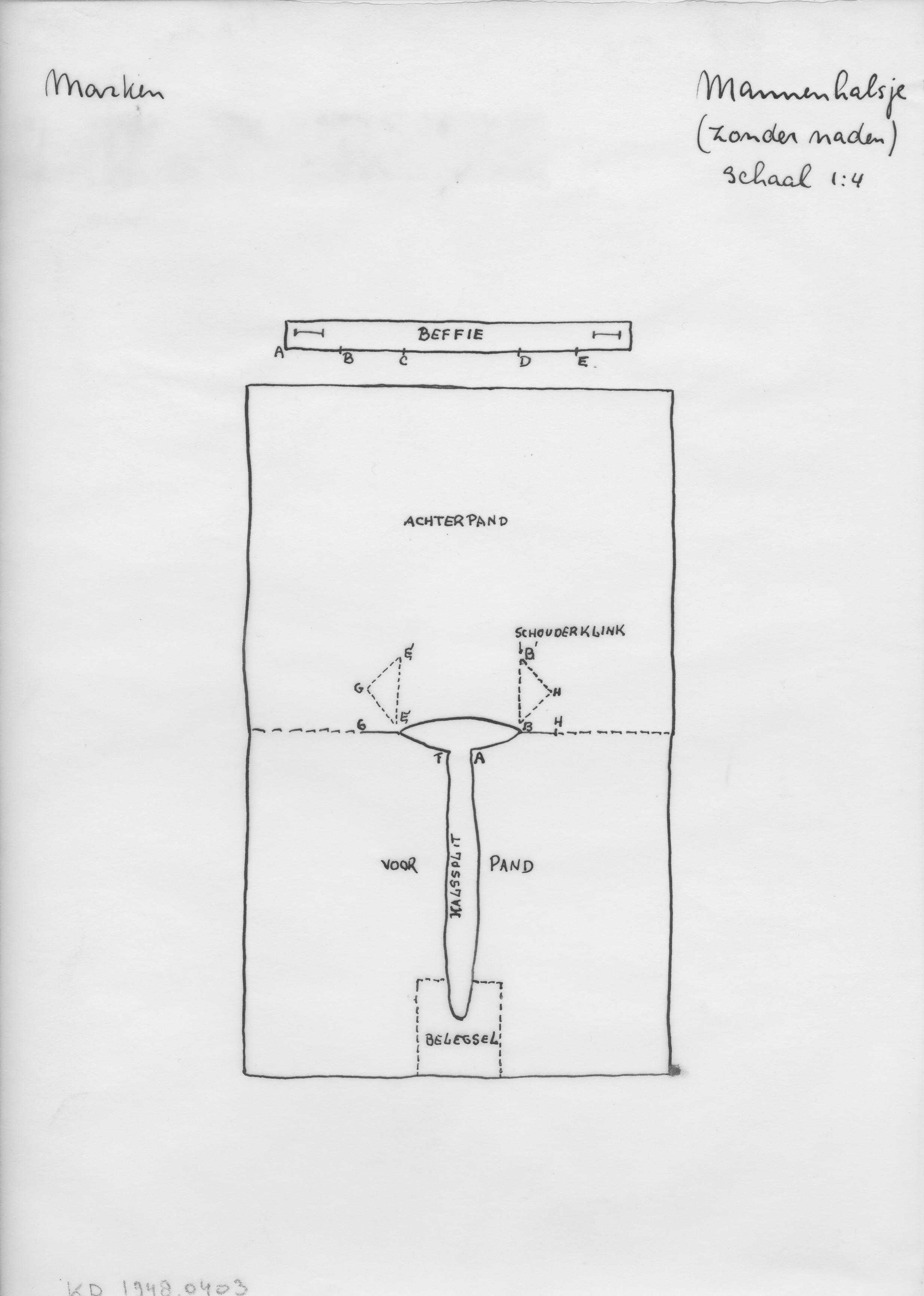 Patroontekening van een 'mannenhalsje', Marken (patr...
