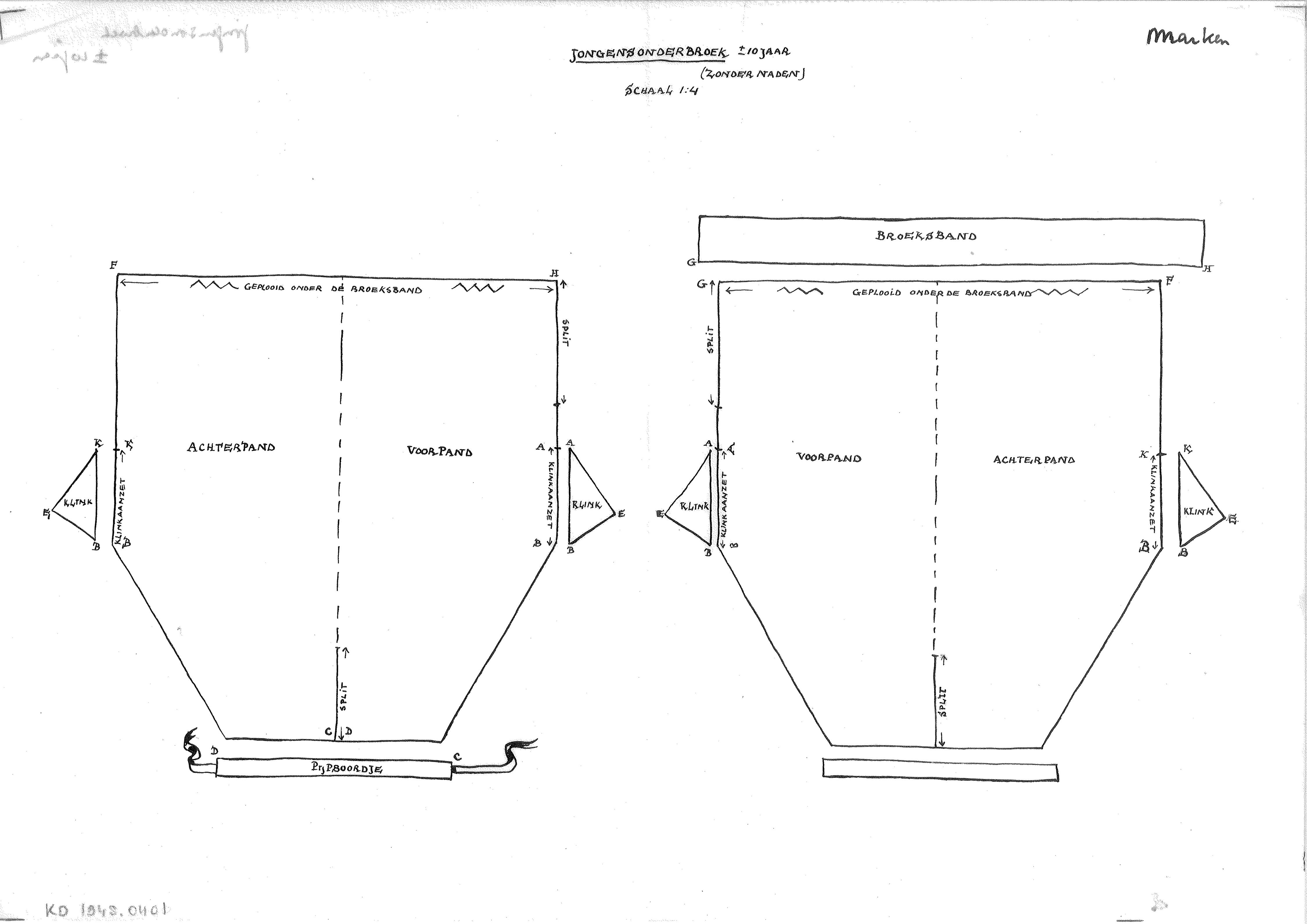 Patroontekening van een jongensbroek, Marken (patroo...