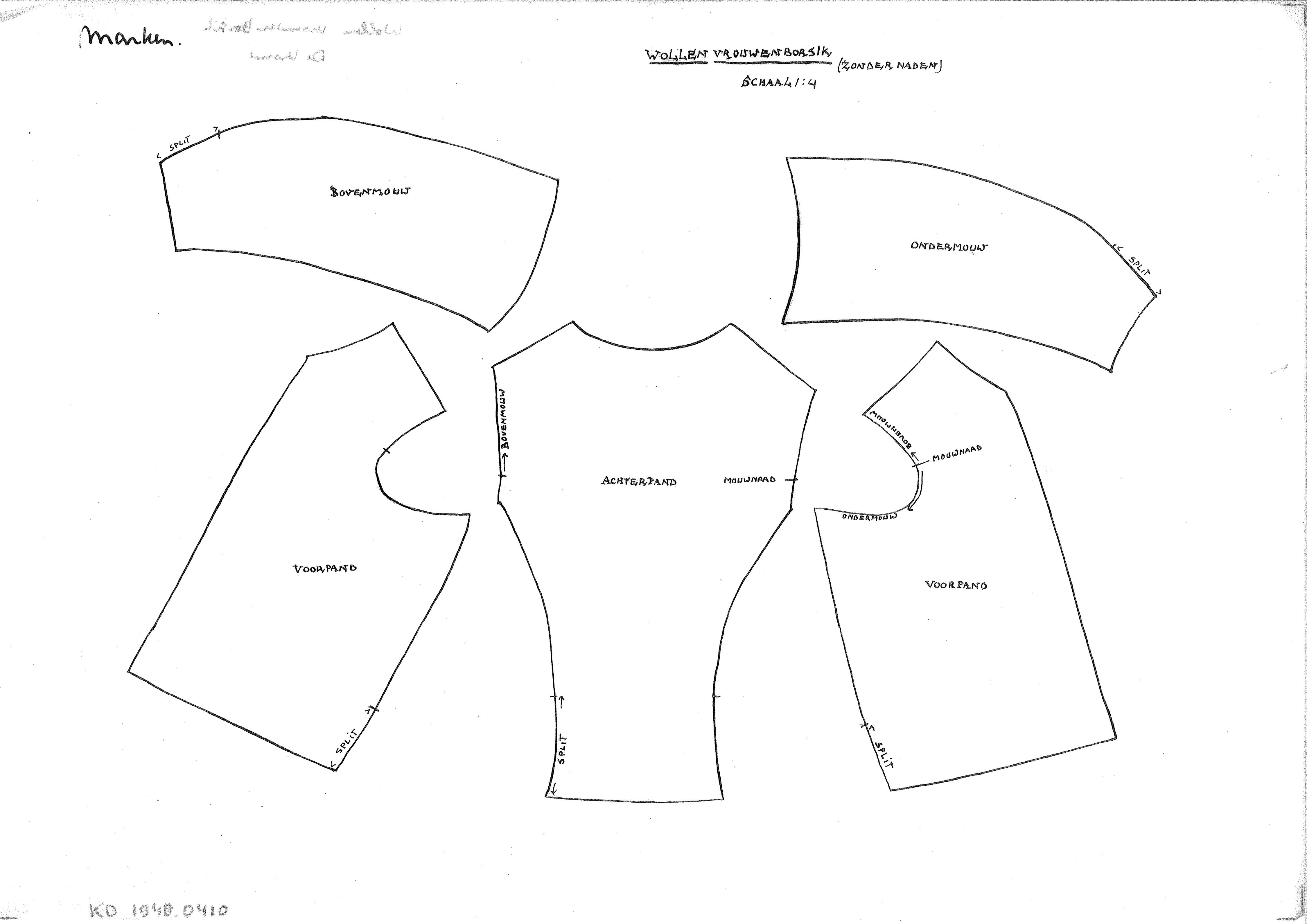 Patroontekening van een 'mouwen', Marken (patroontek...