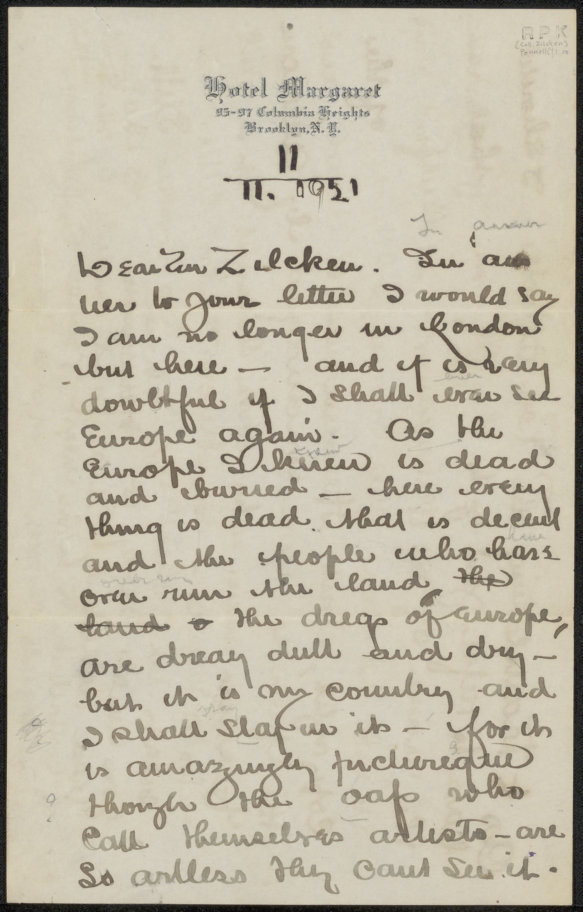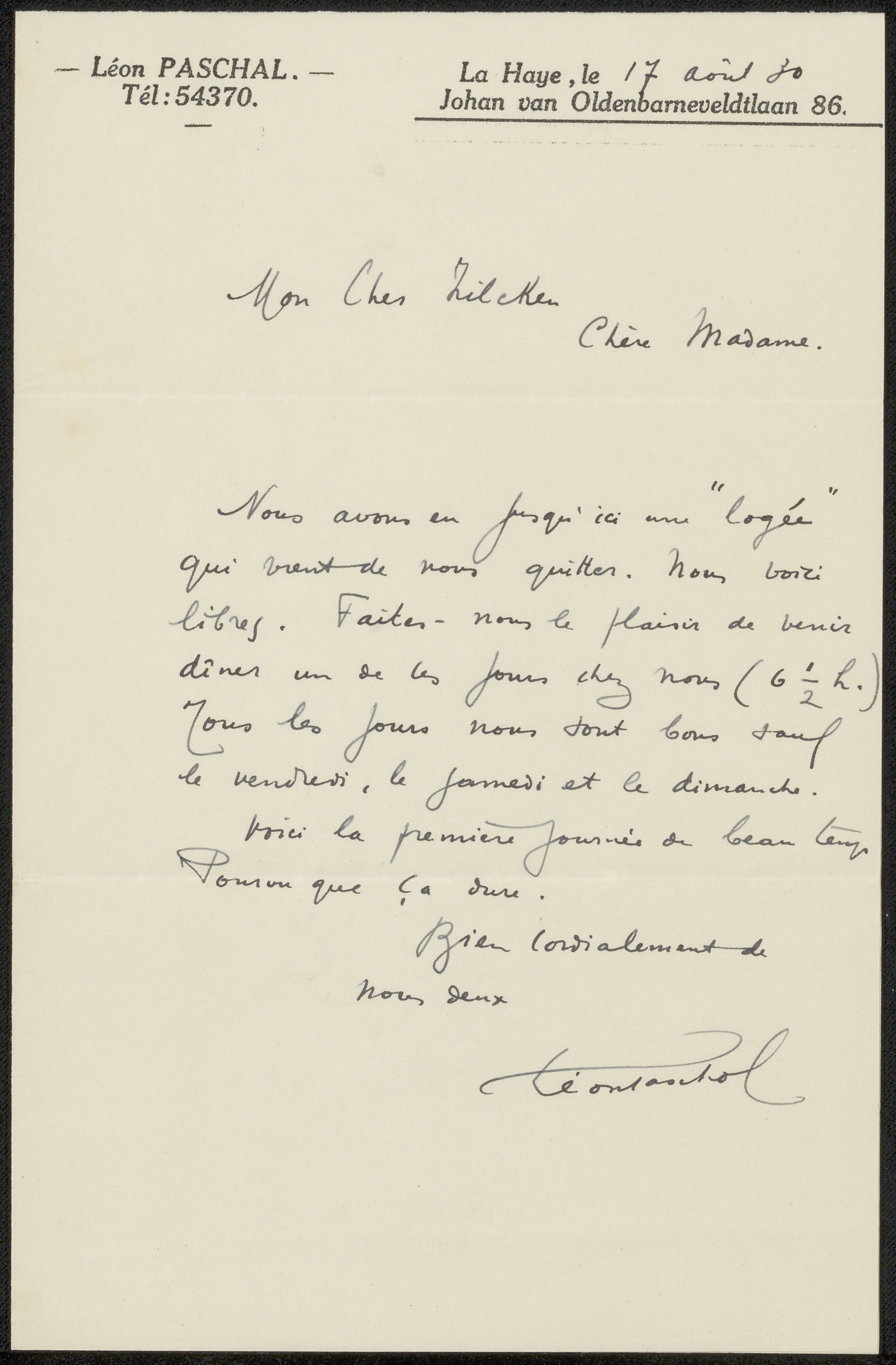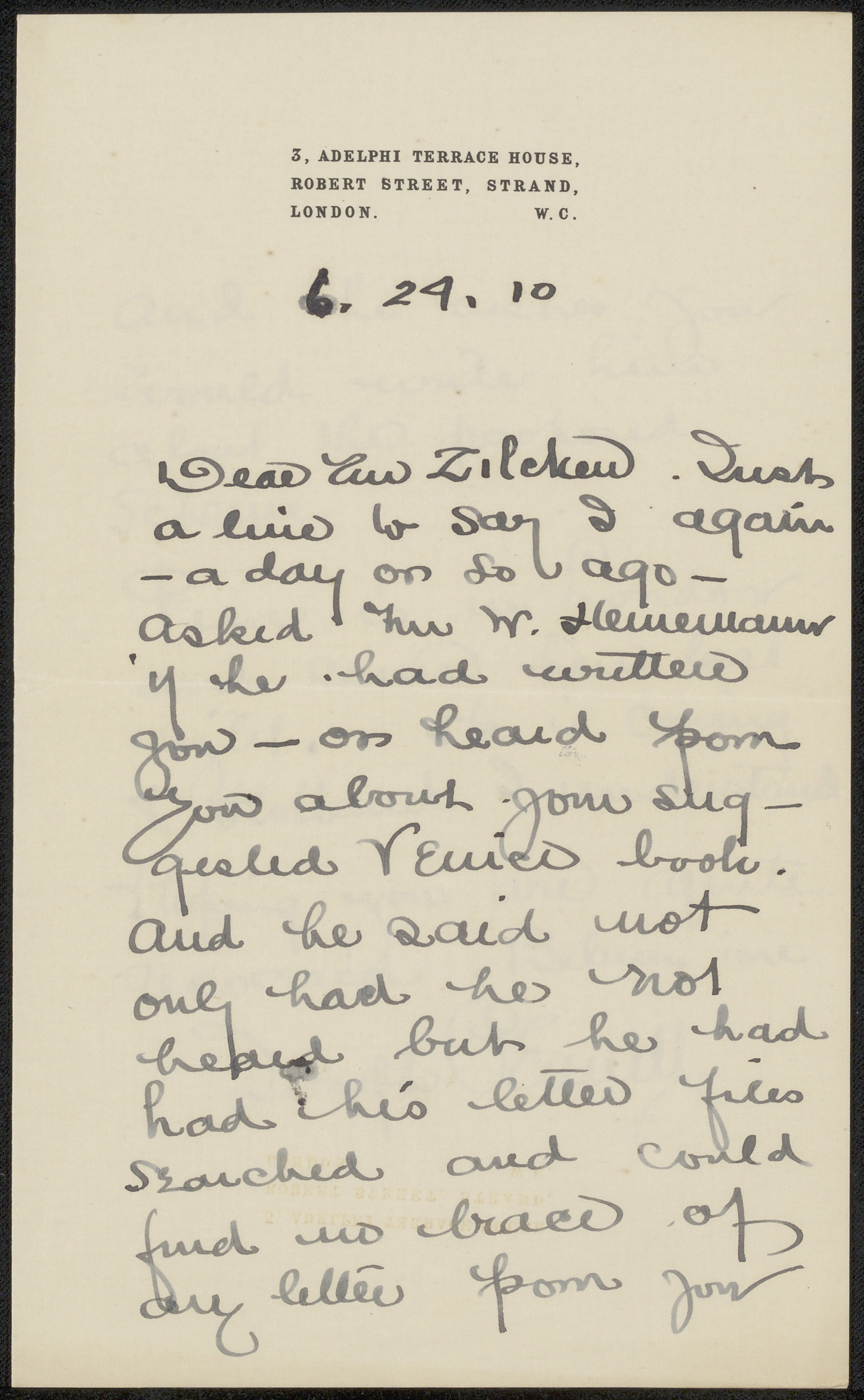 Brief aan Philip Zilcken