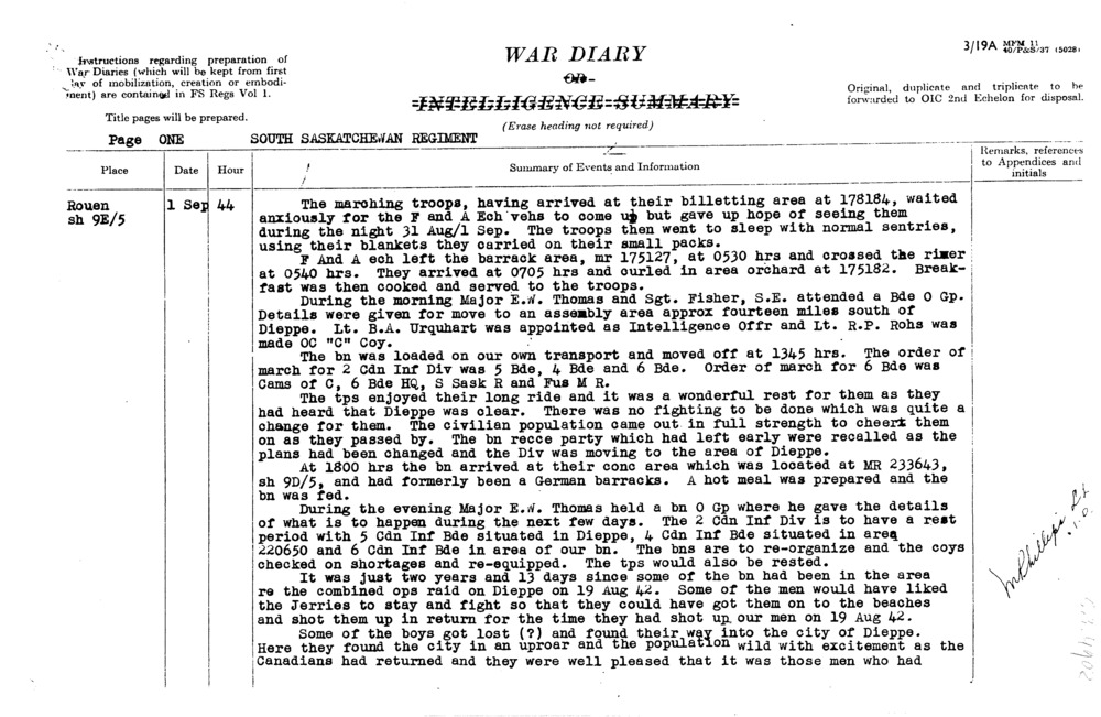 War Diary South Saskatchewan Regiment, 1 sept. - 31 ...