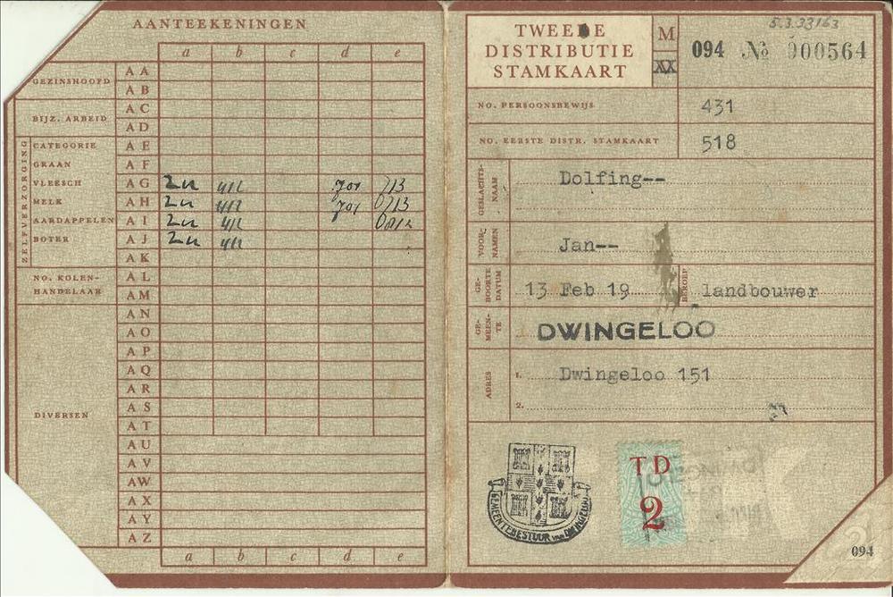 Tweede Distributiestamkaart op naam van Jan Dolfing