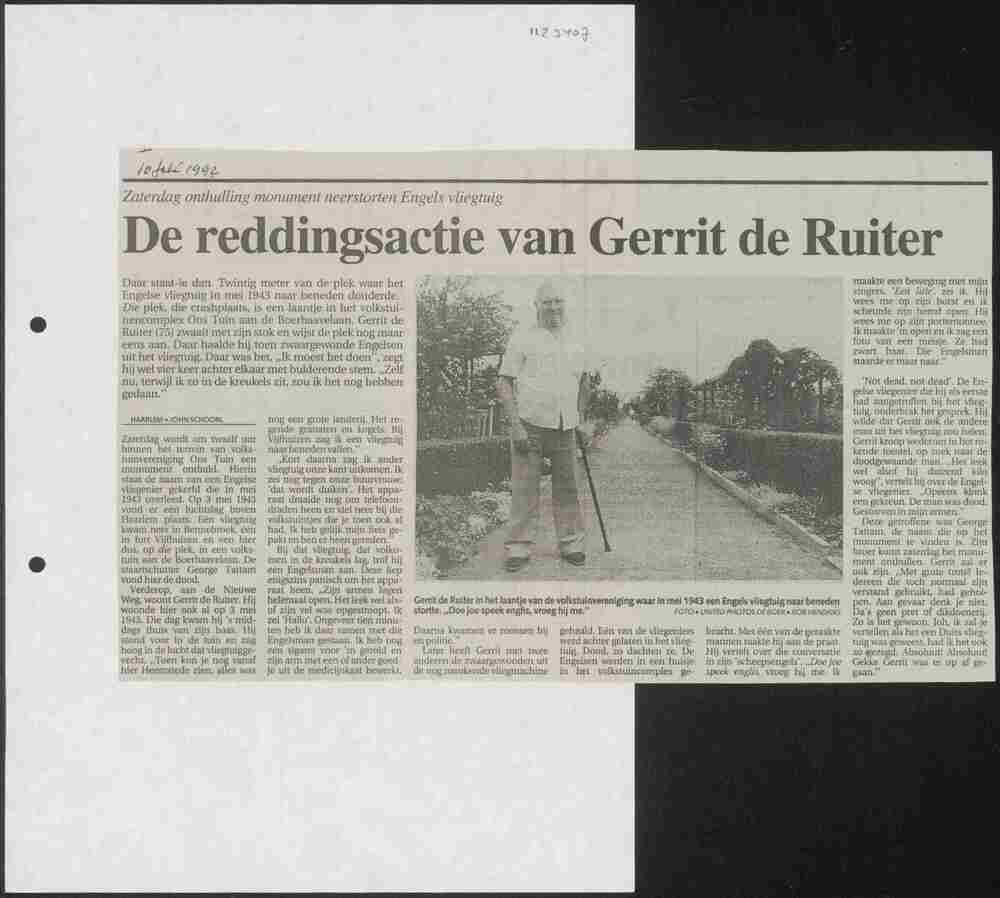 Artikel oprichting monument in Haarlem 13 juli 1992.