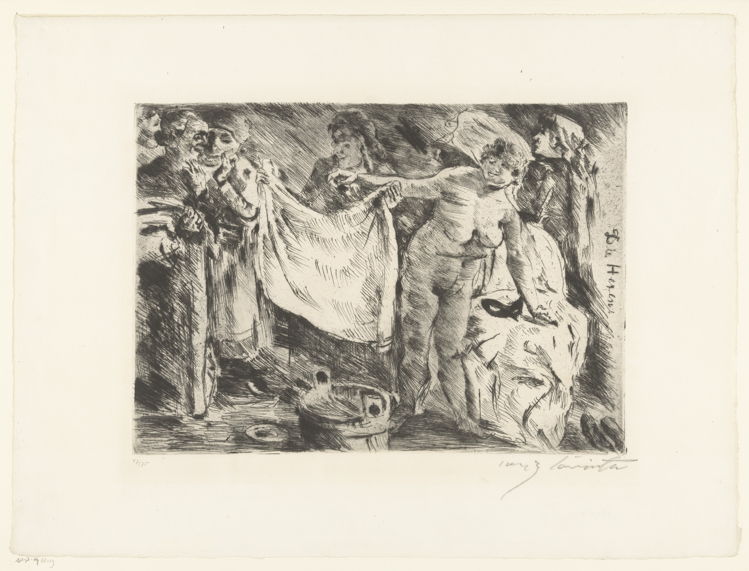 Groep vrouwen, waarvan één naakt en een ander een do...