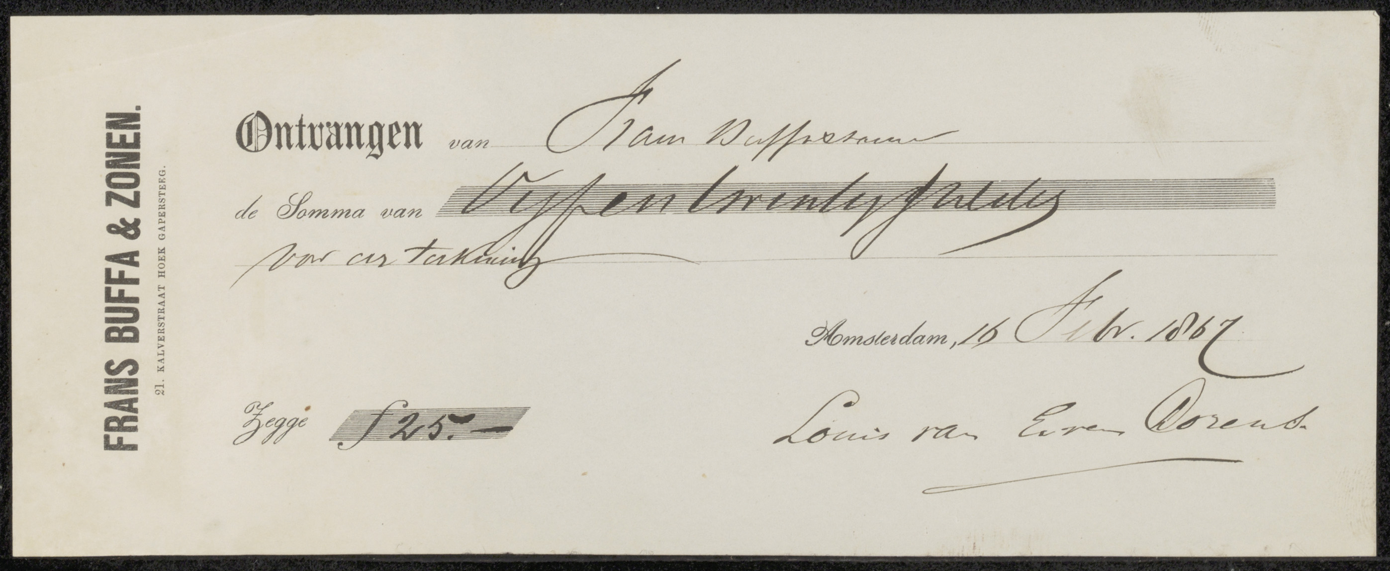 Kwitantie voor Ludovicus Johannes van Erven Dorens