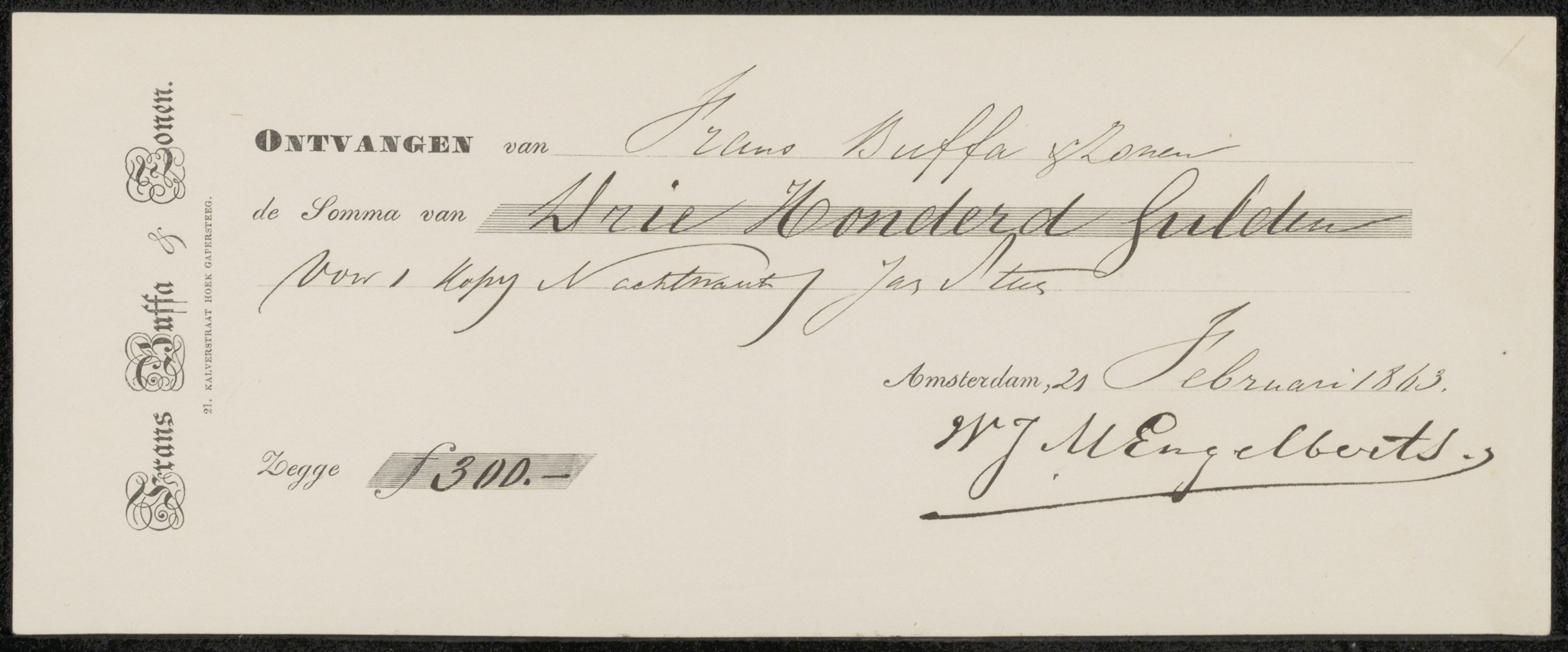 Kwitantie voor Willem Jodocus Mattheus Engelberts