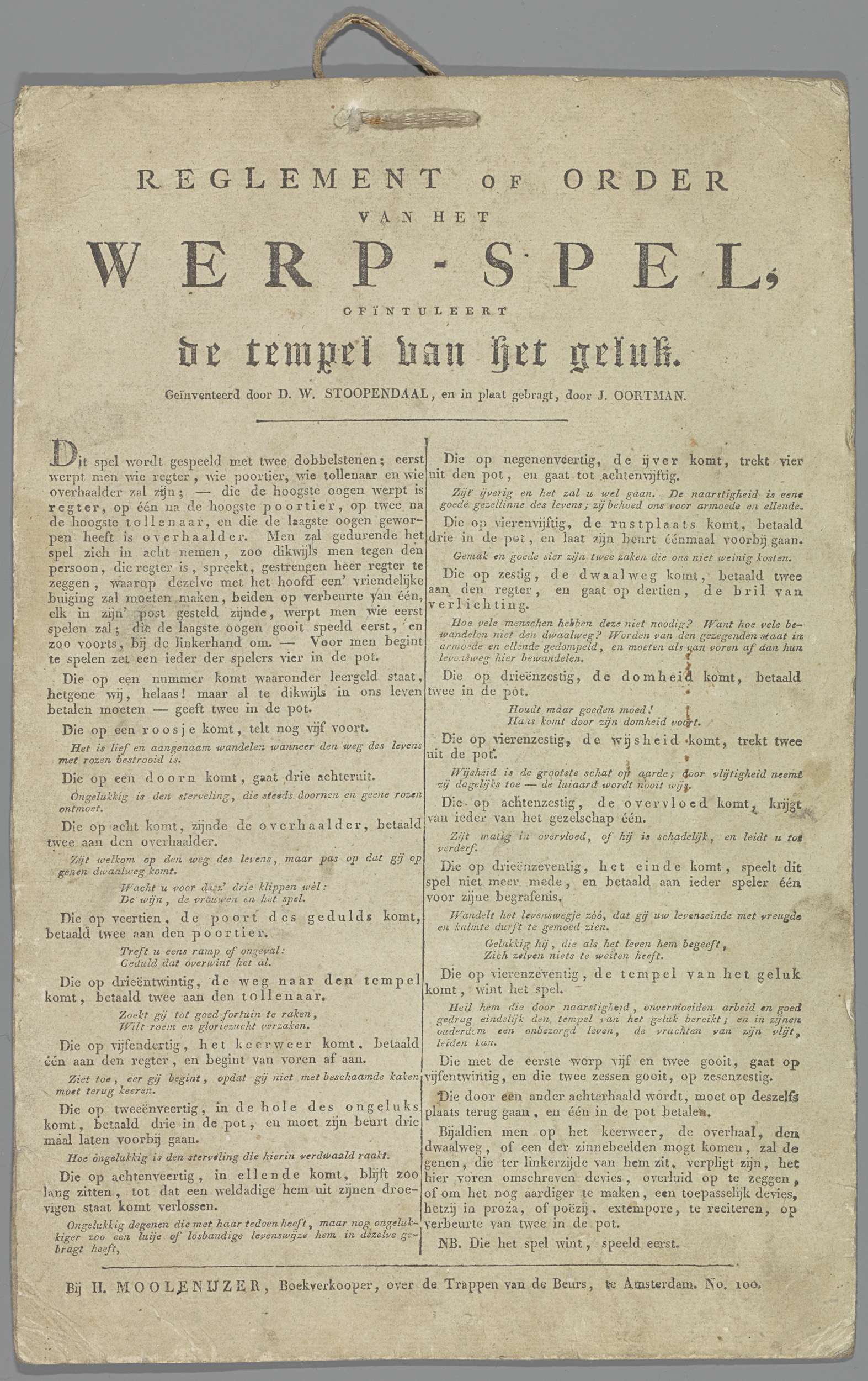 Reglement en verklaring / van het / Spel / genaamd /...