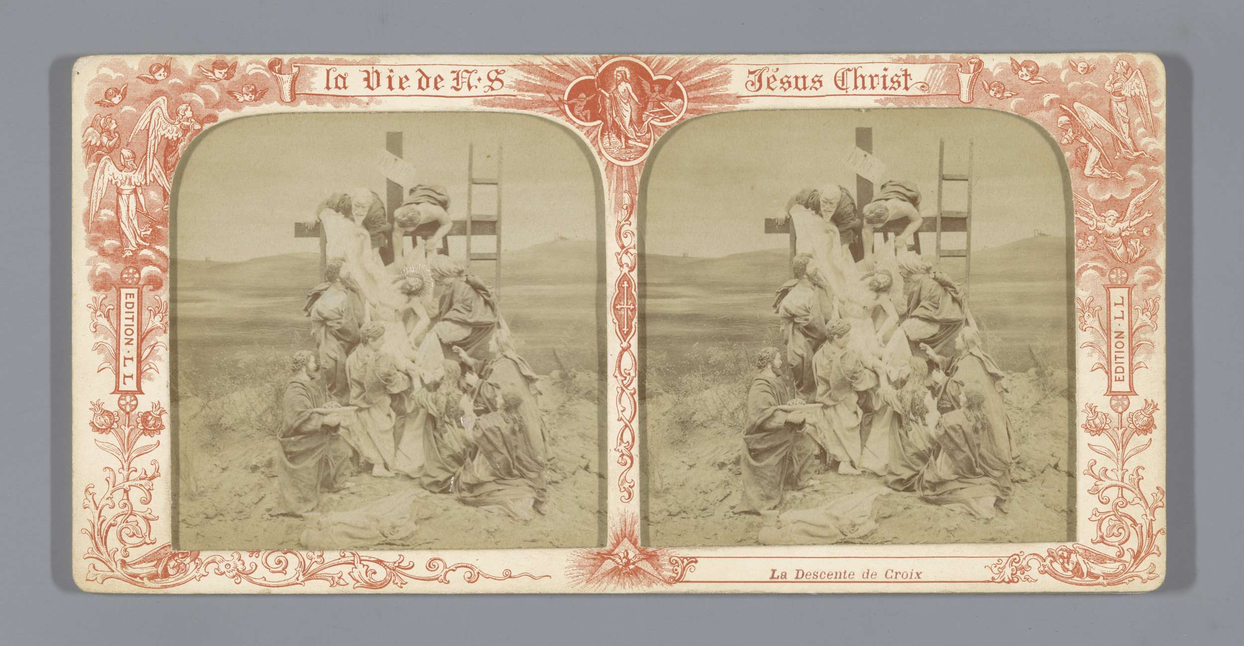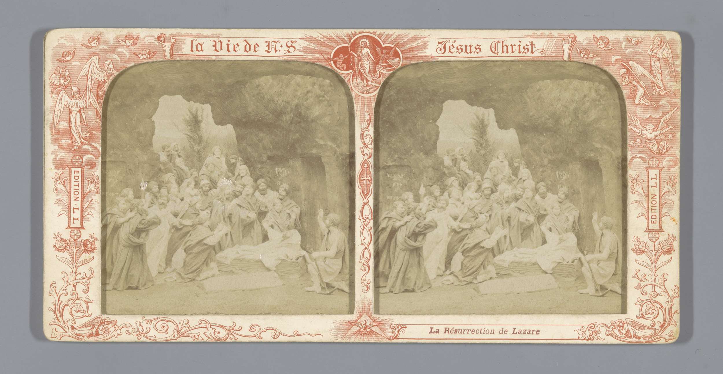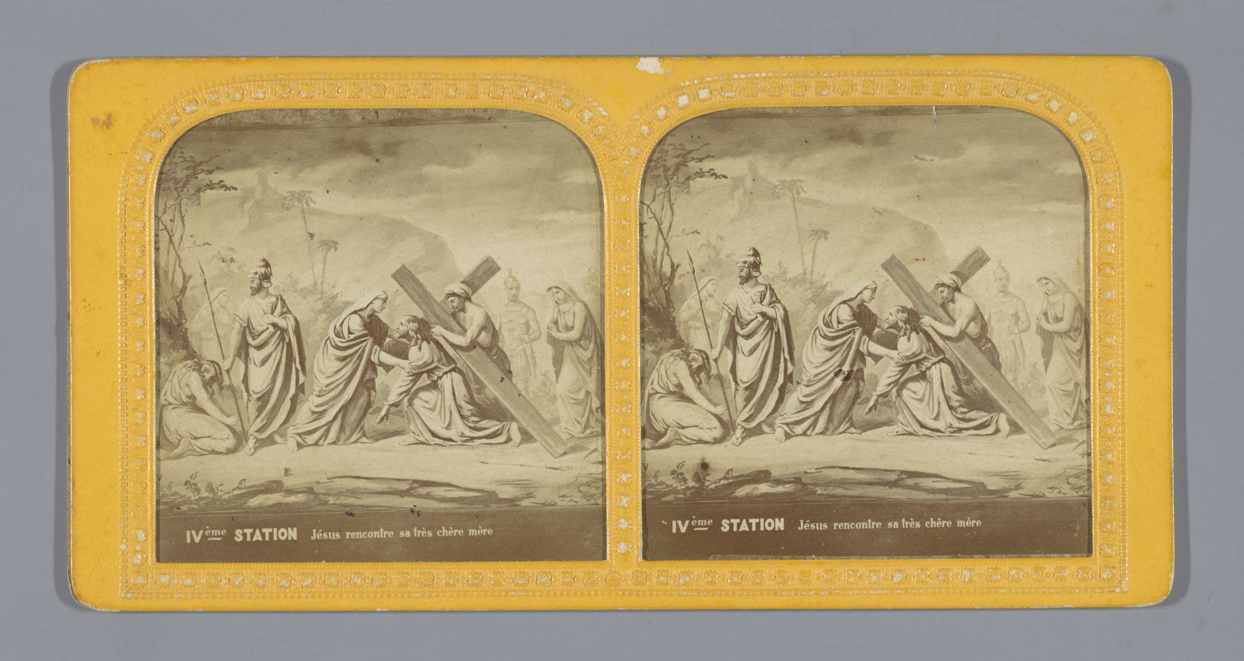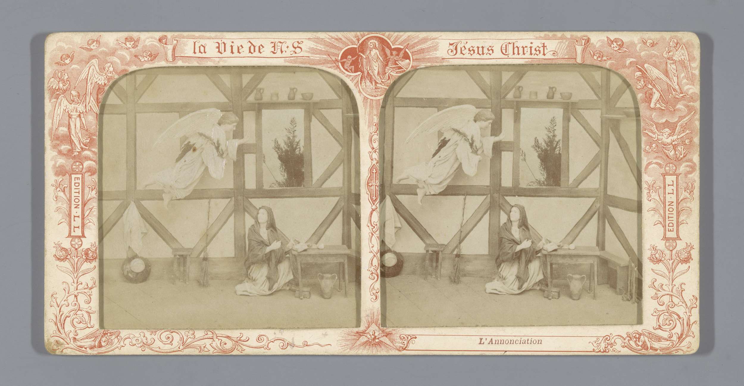 Fotoreproductie van de ontmoeting met Maria tijdens ...