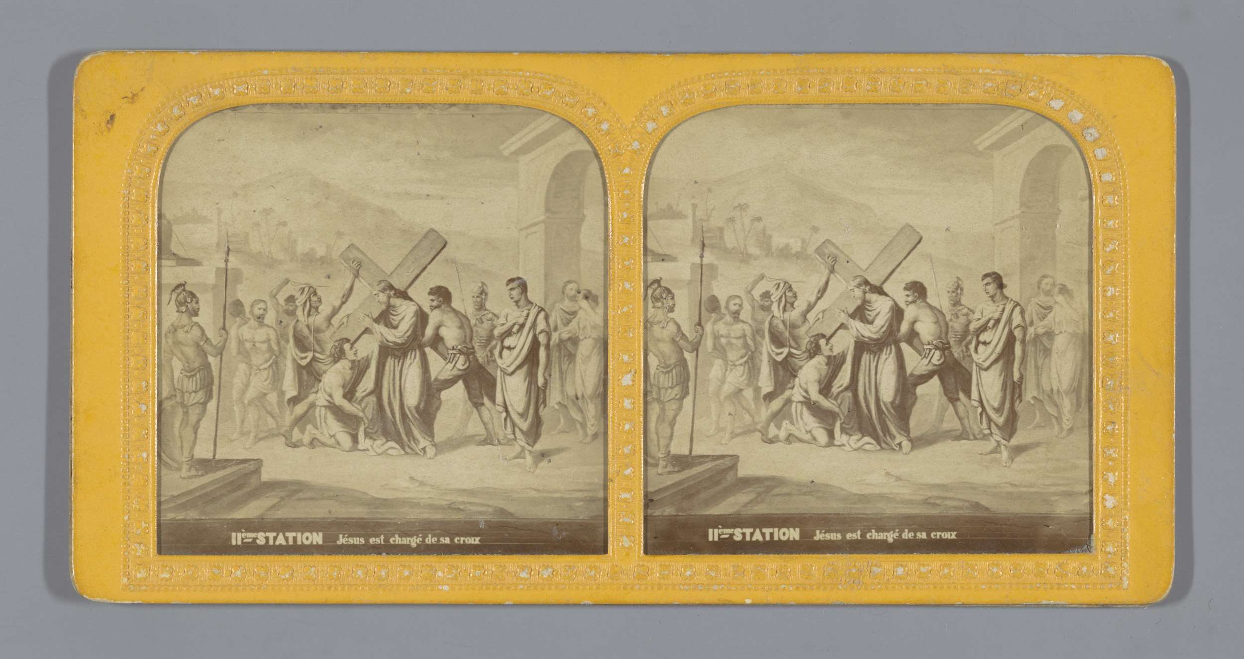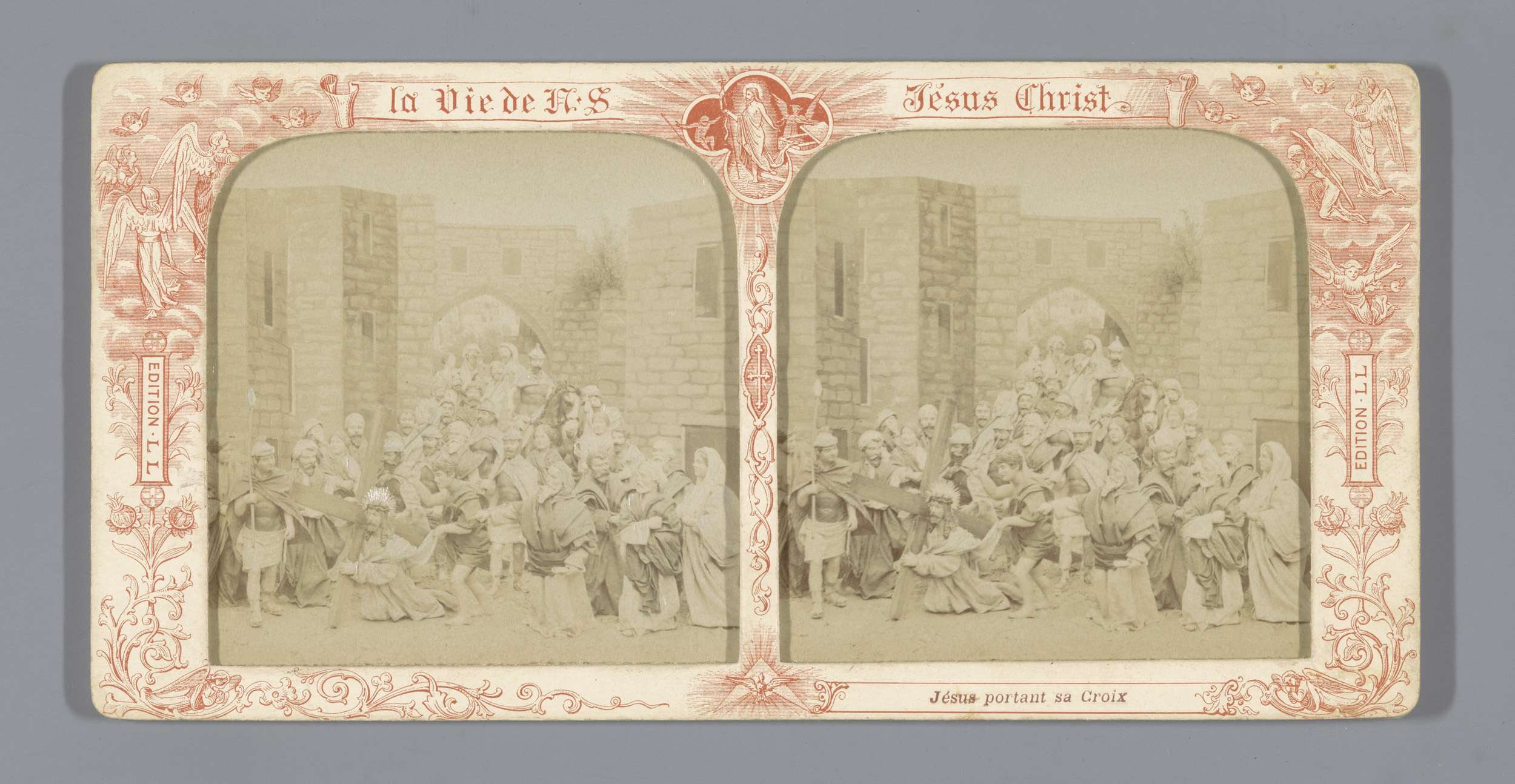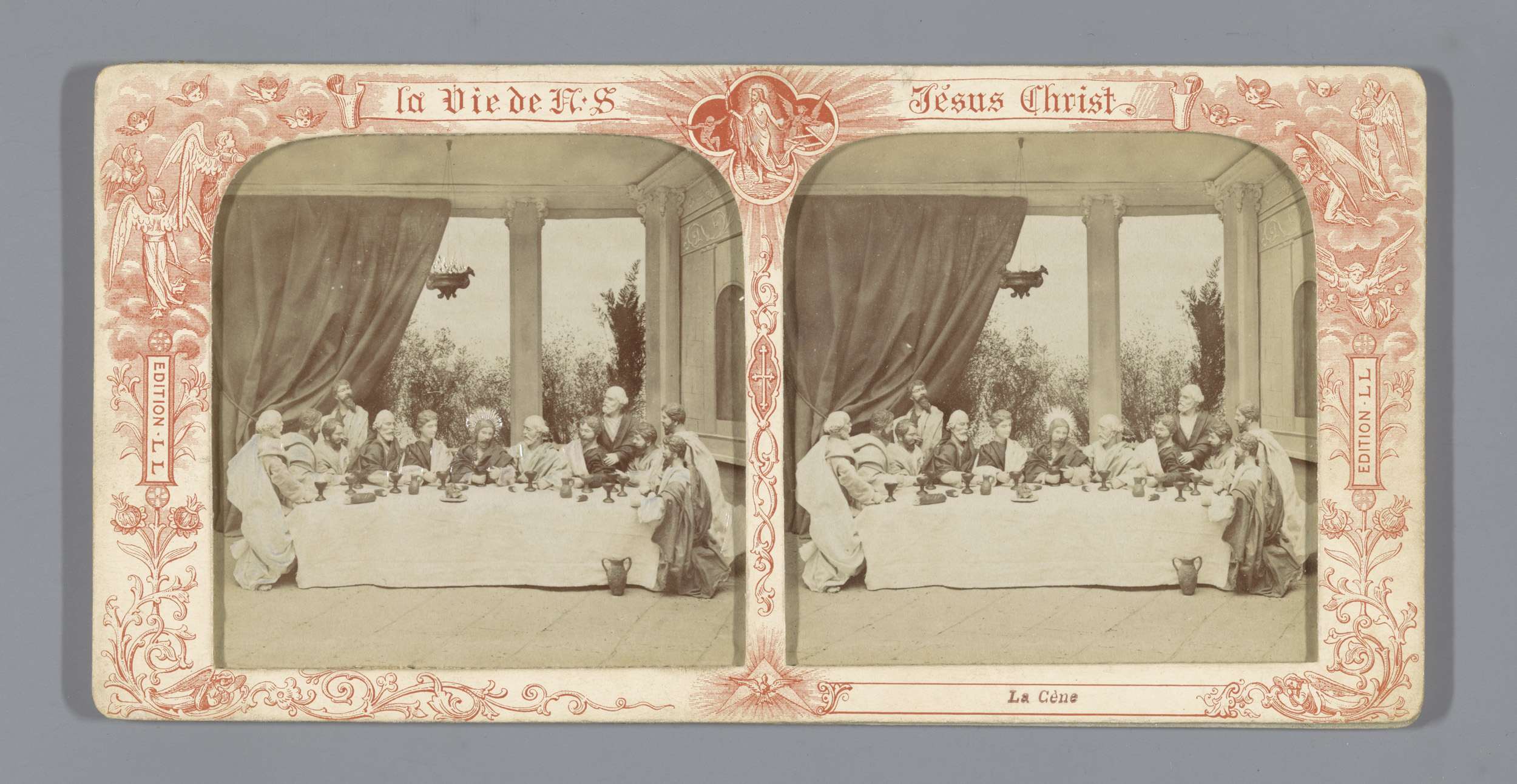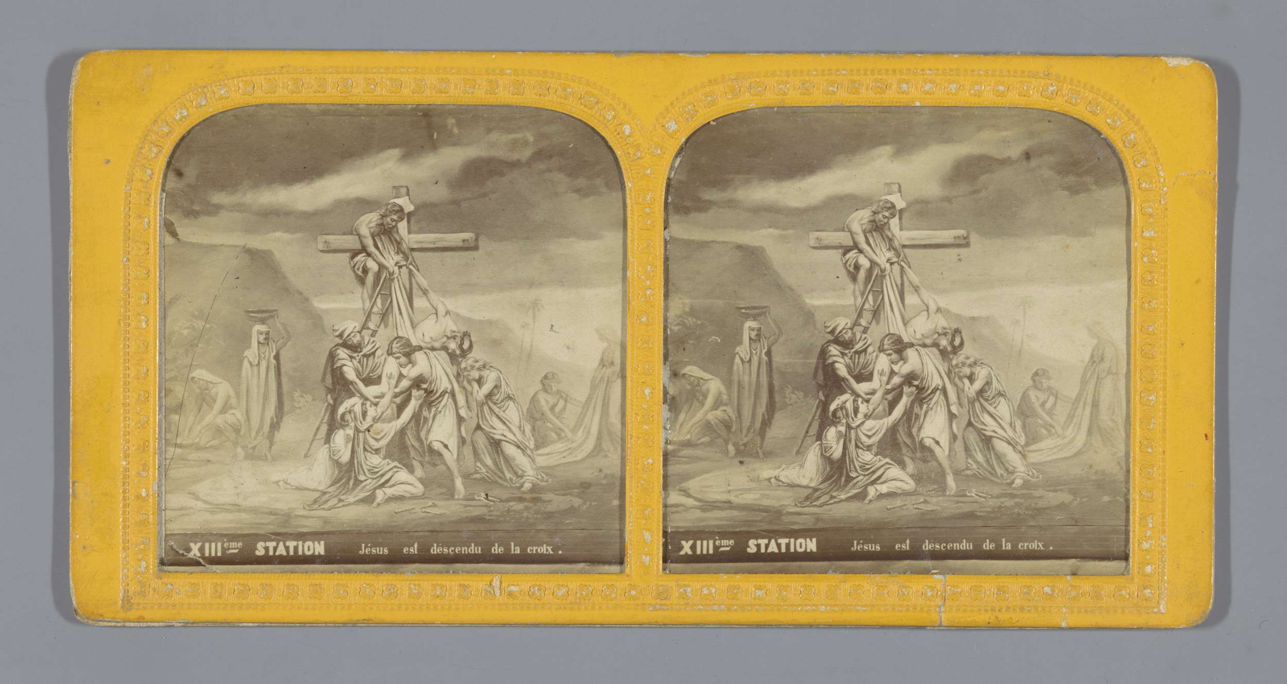 Fotoreproductie van de ontmoeting met Maria tijdens ...