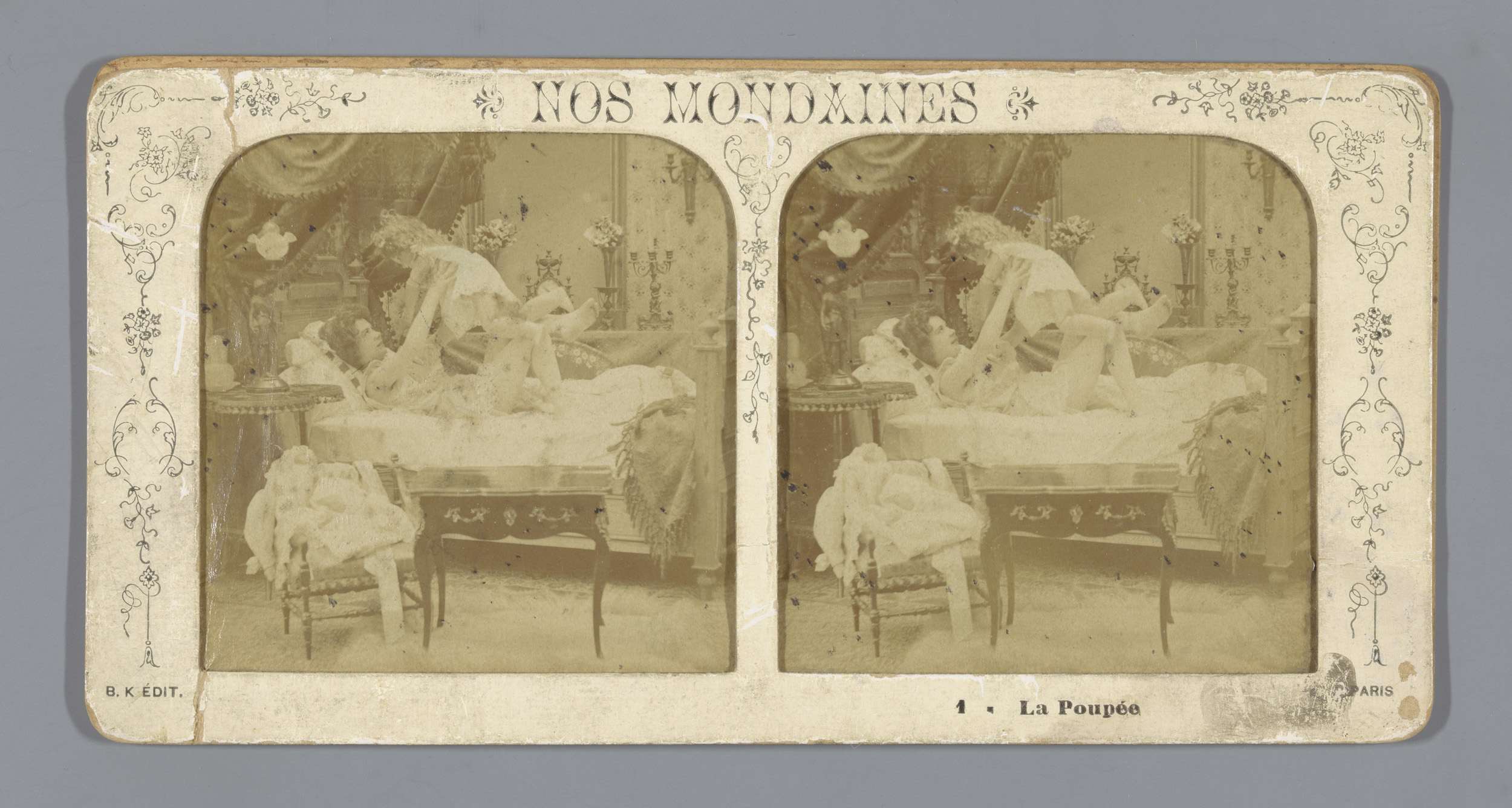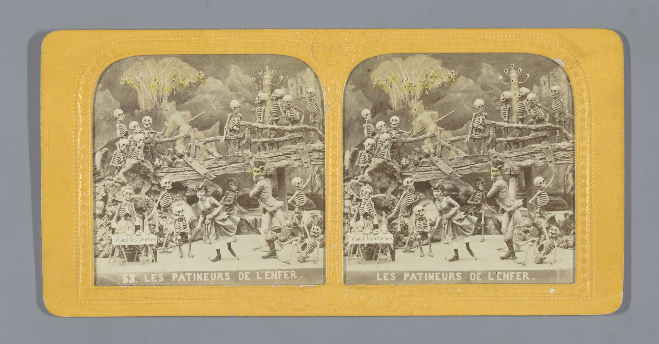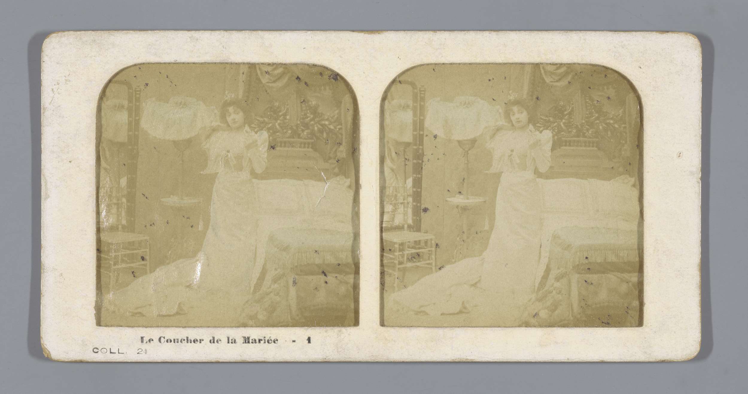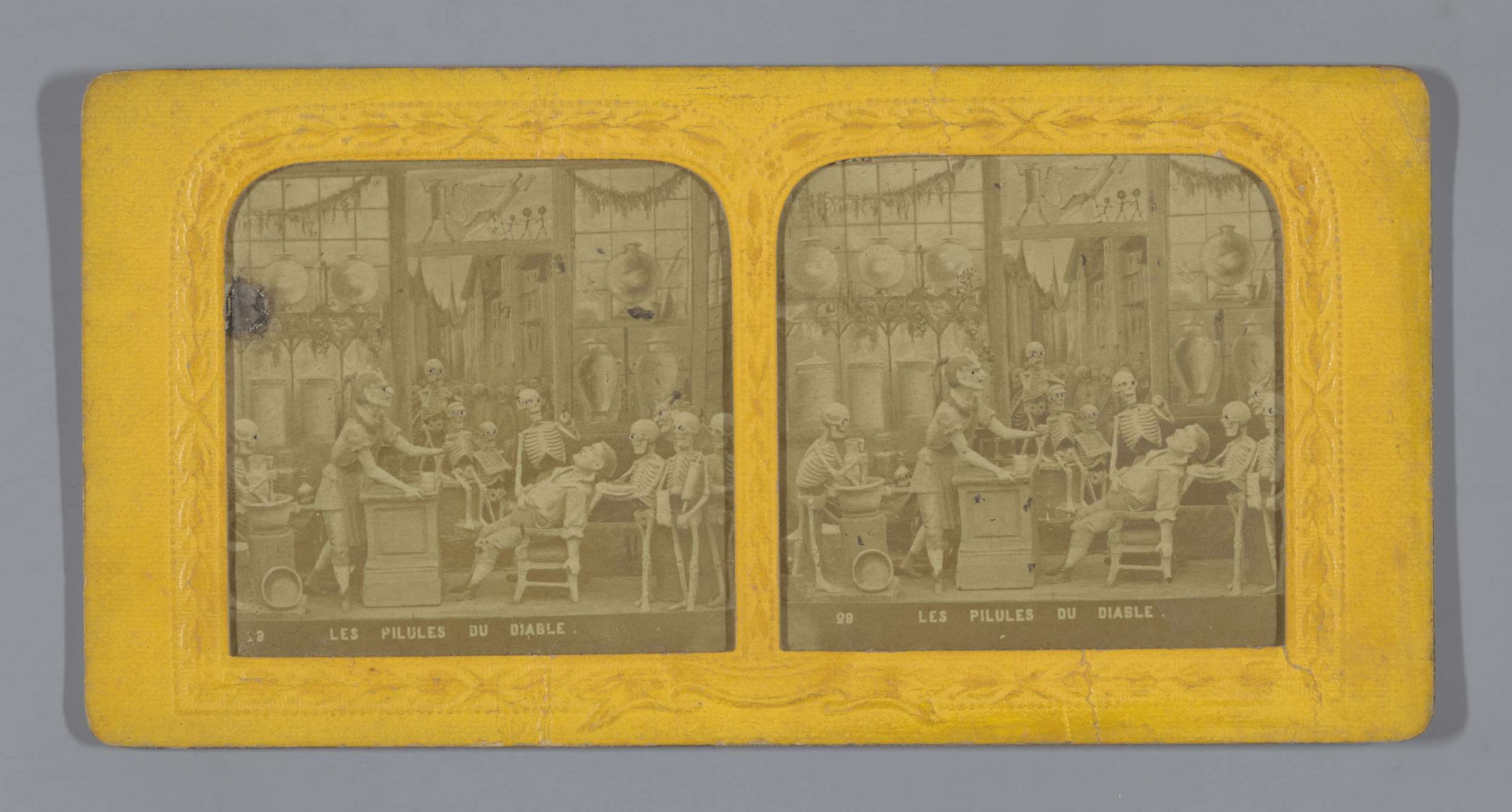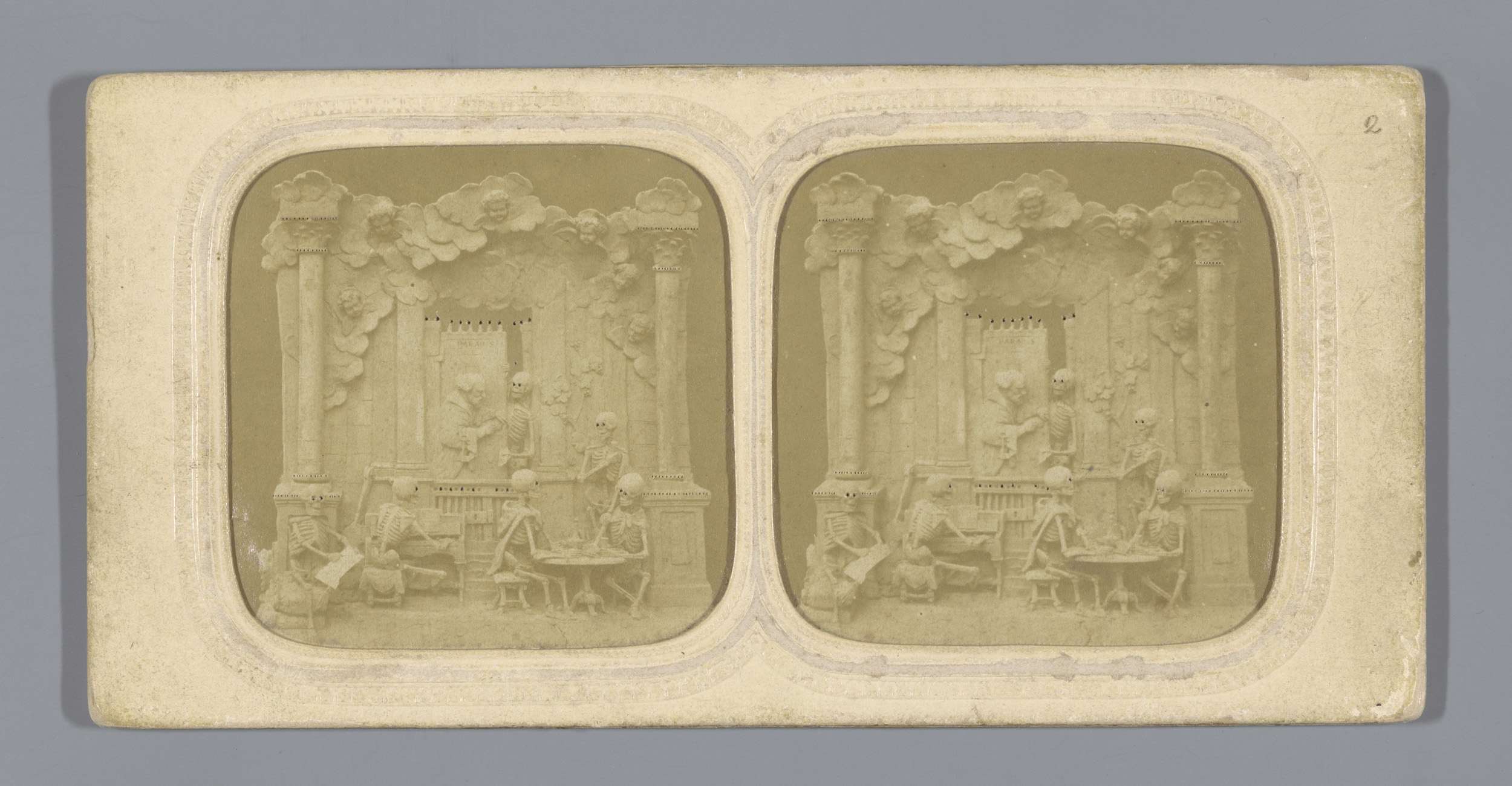 Boudoir van mevrouw Satan met dienstmeisje en skelet