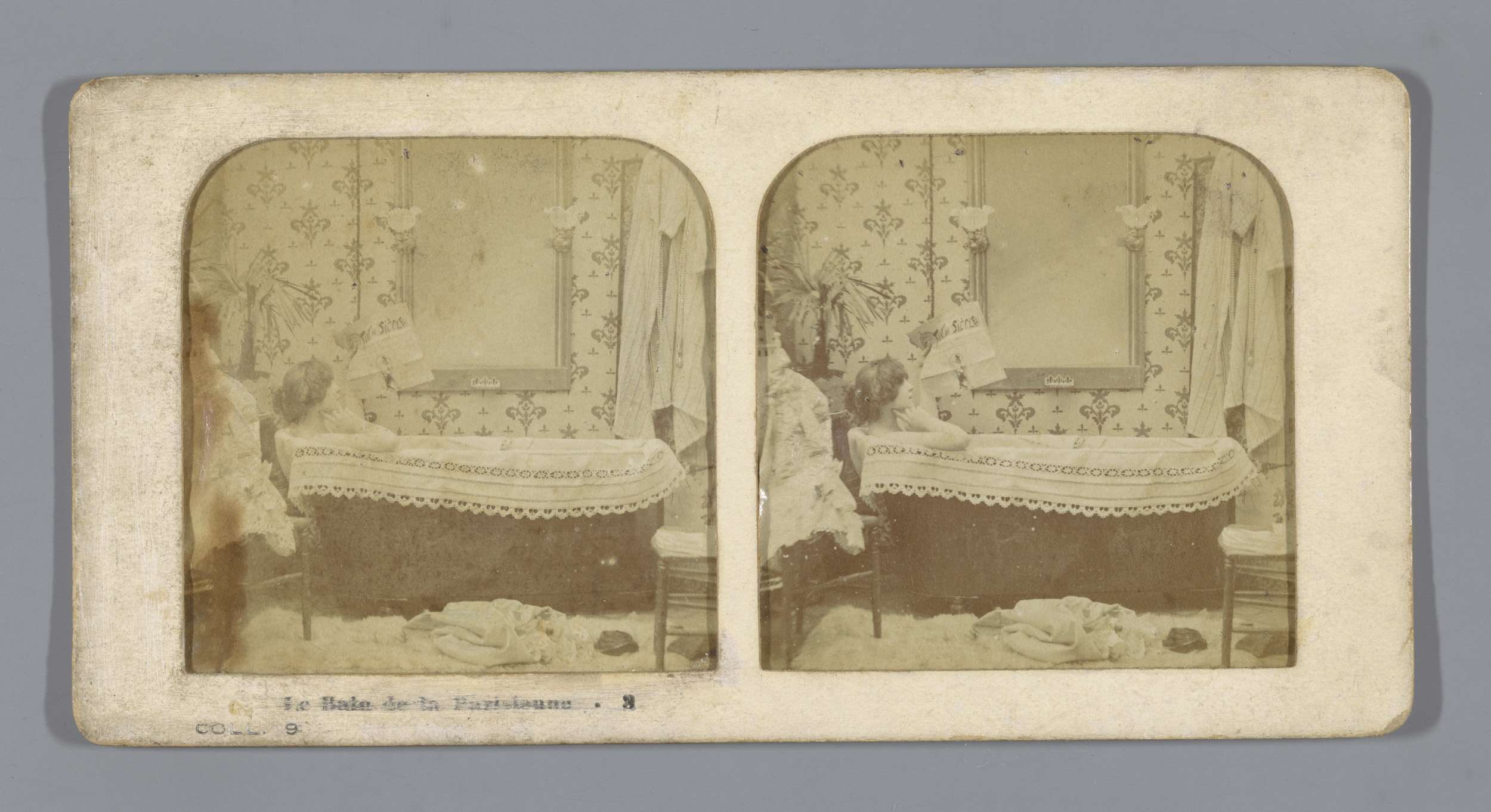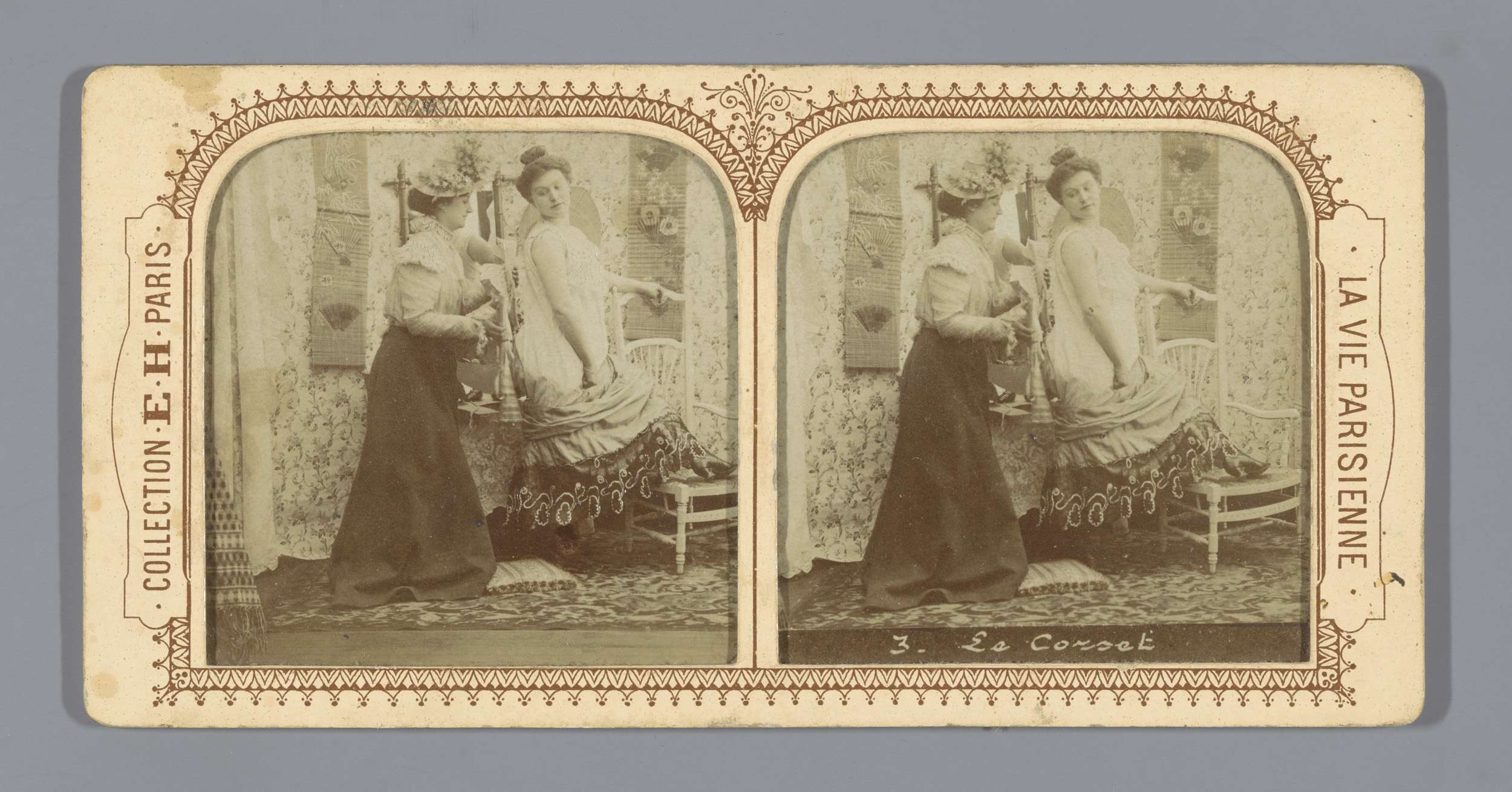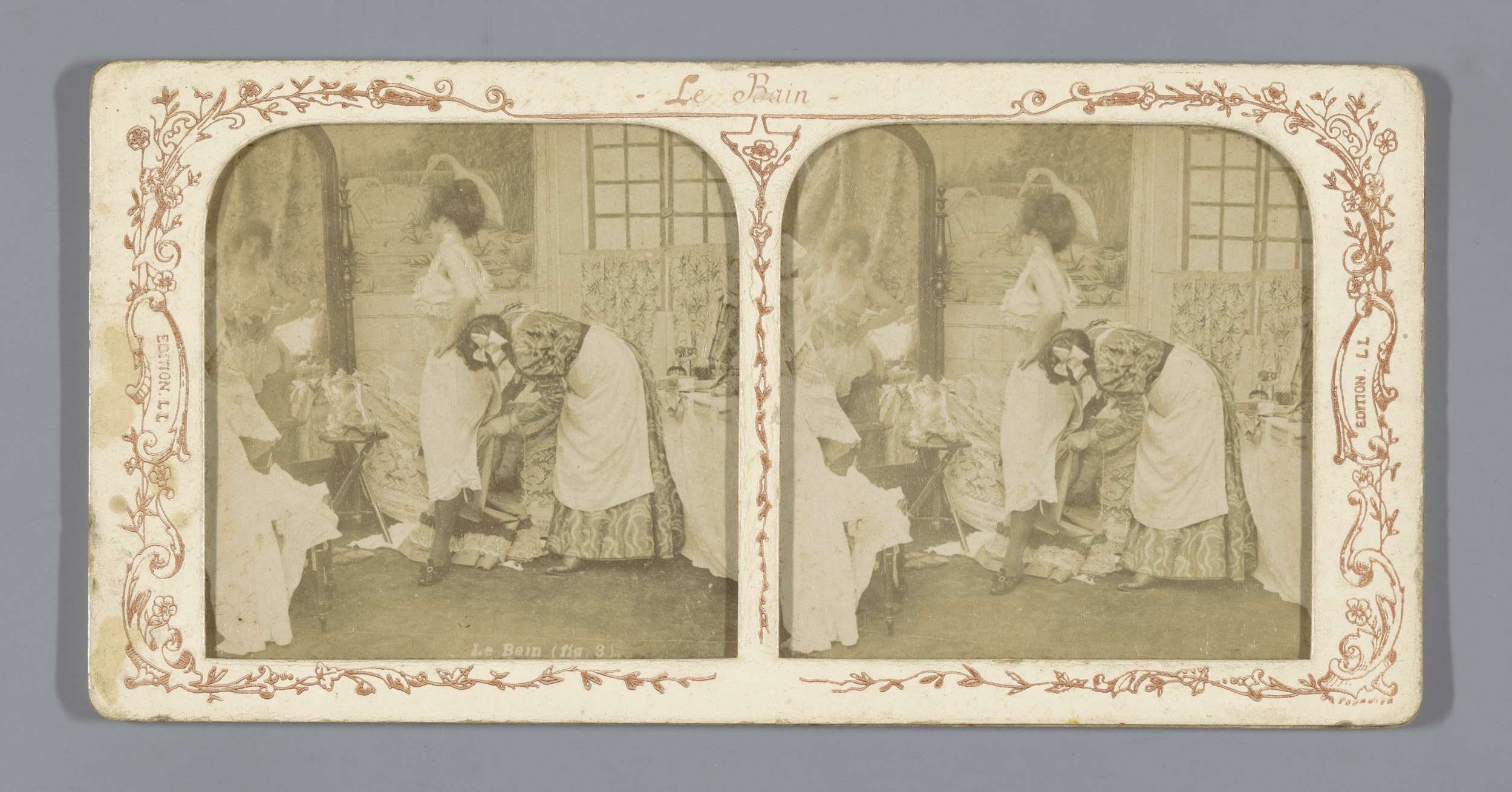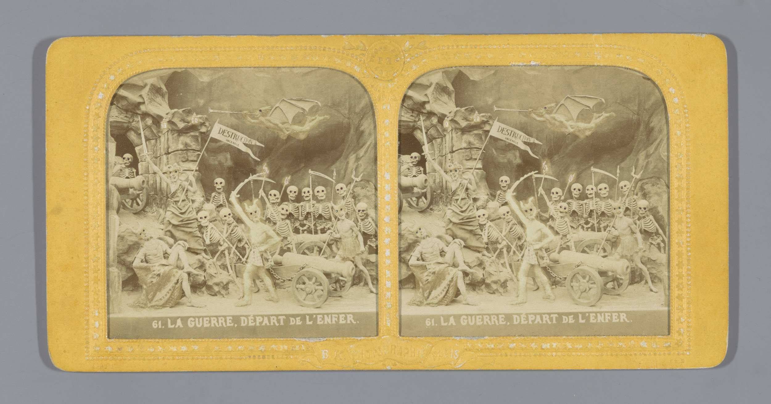 Boudoir van mevrouw Satan met dienstmeisje en skelet