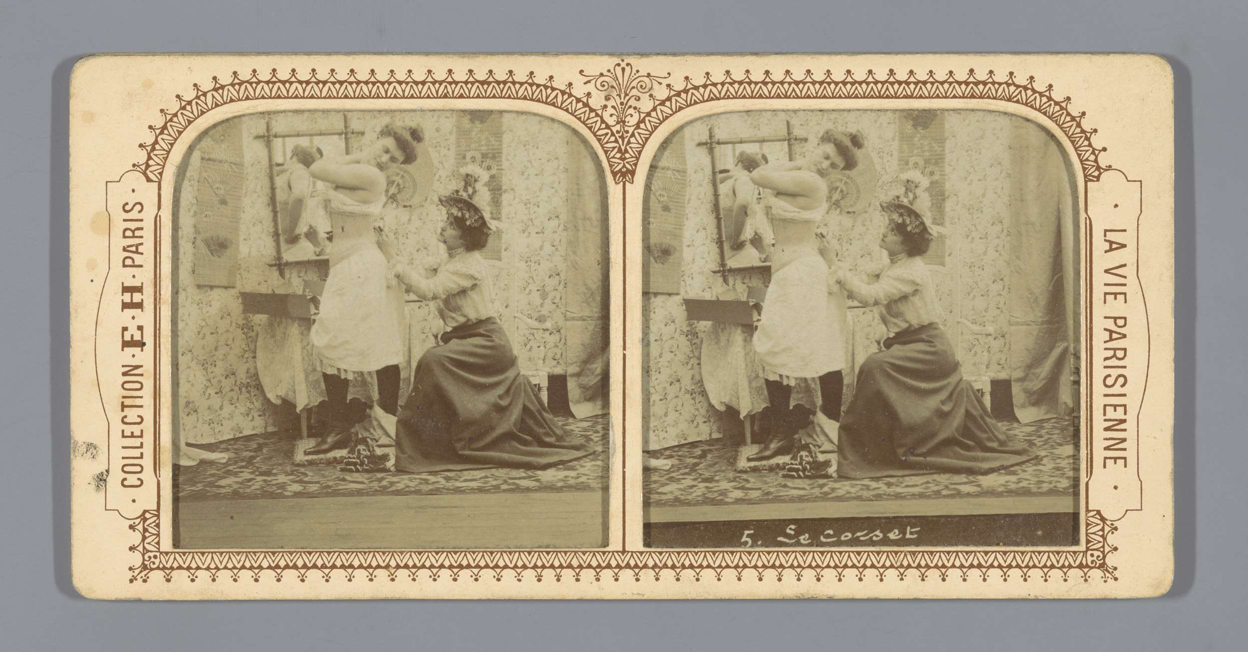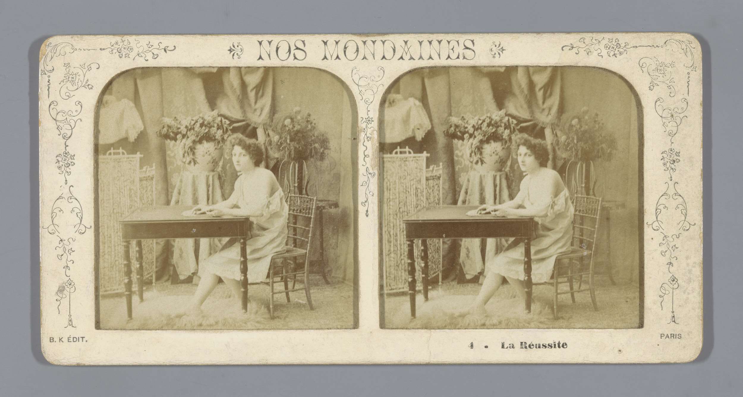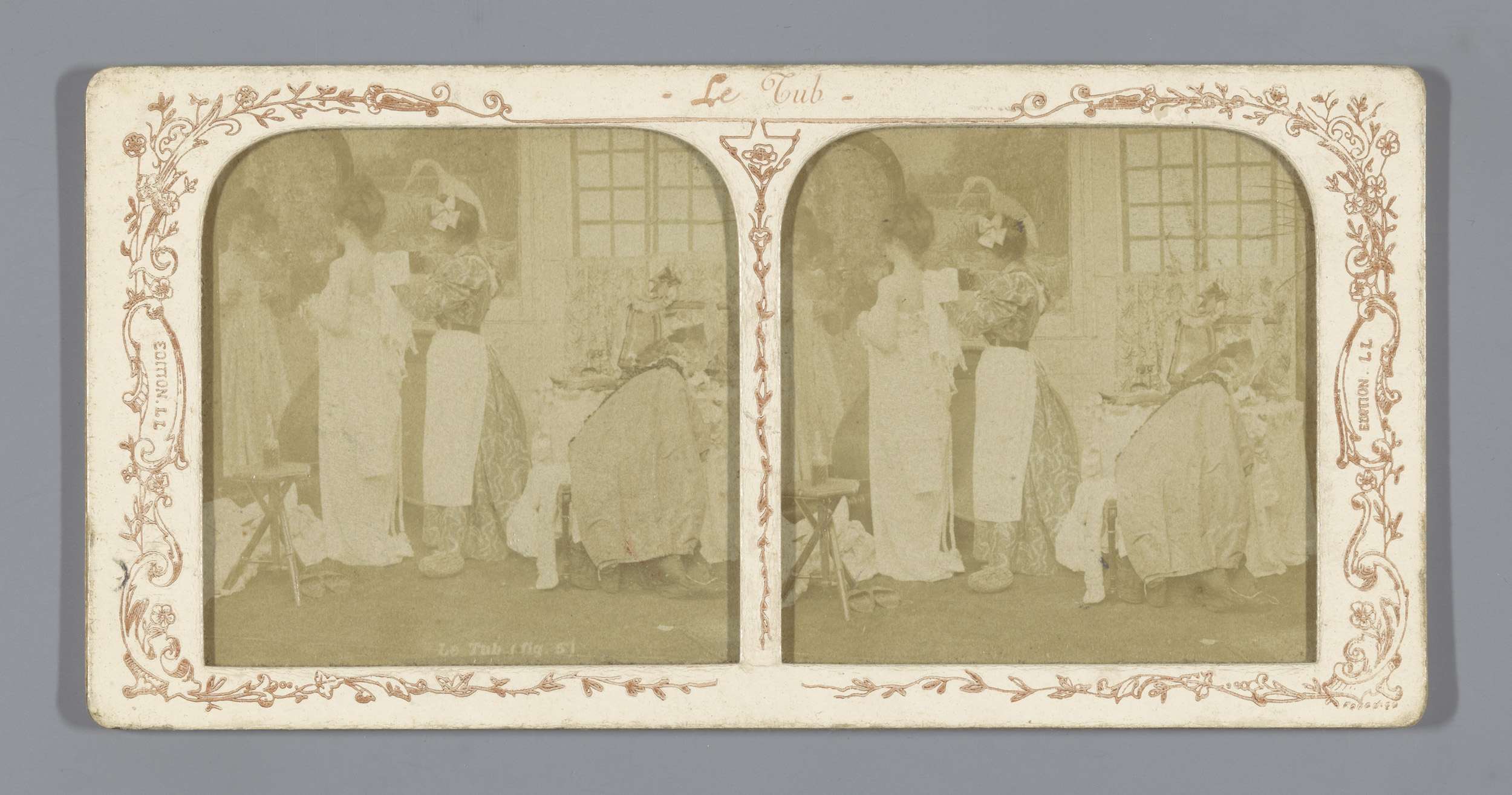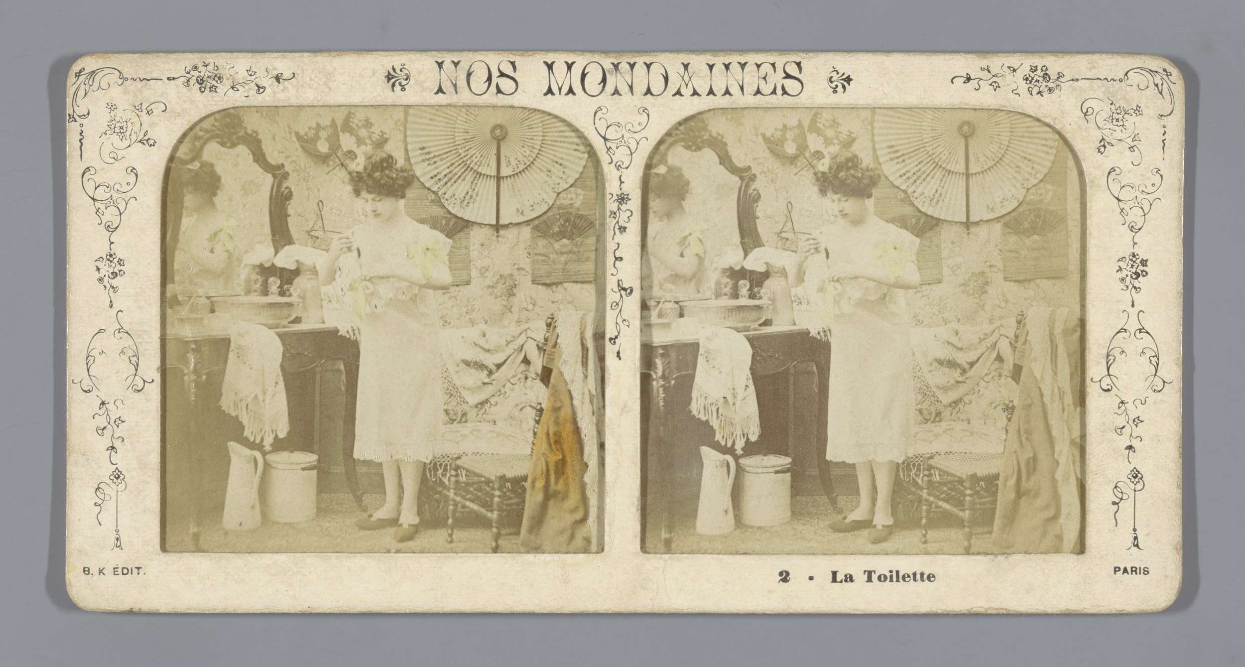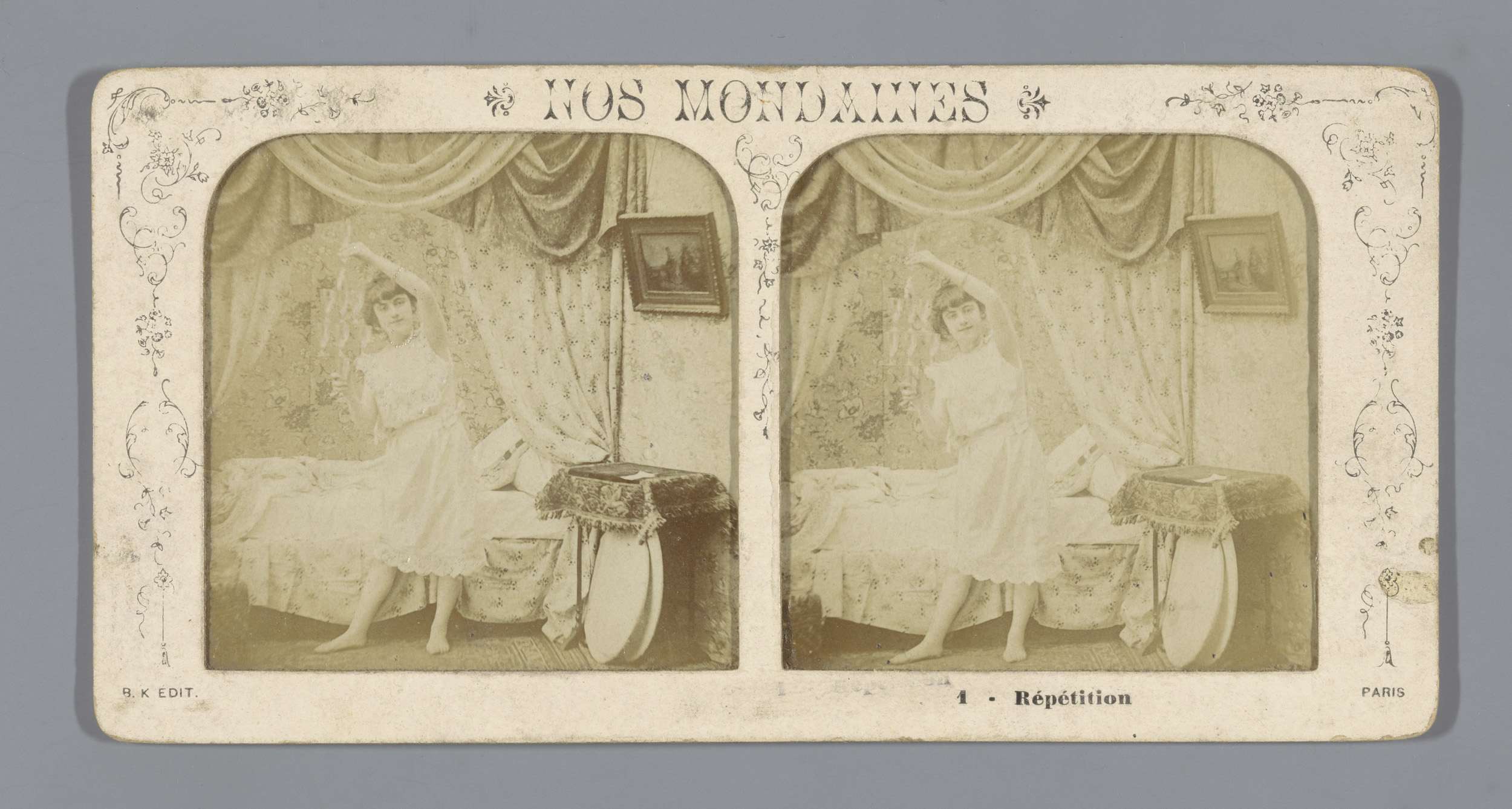 Boudoir van mevrouw Satan met dienstmeisje en skelet