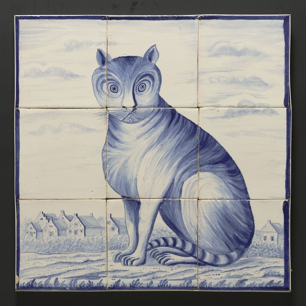 Tegeltableau van keramiek, tinglazuur, voorstellende...