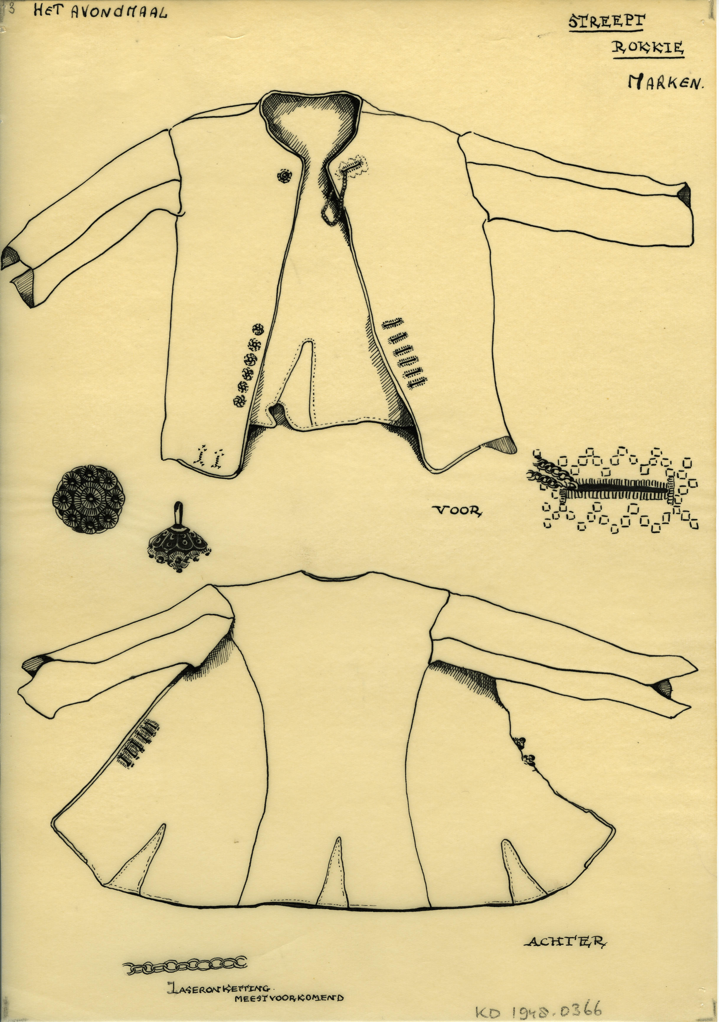 Tekening van een 'streept rokkie', Marken (patroonte...