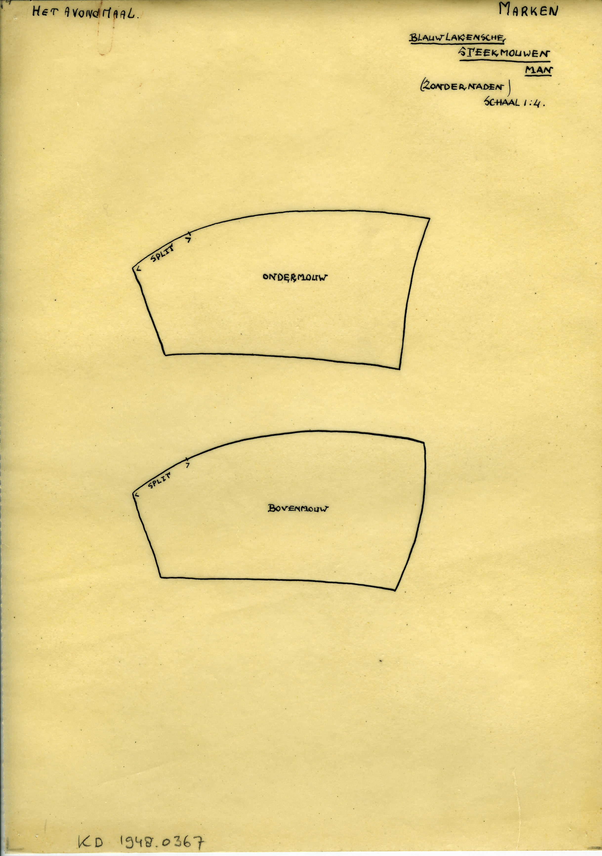Patroontekening van blauw lakense steekmouwen, Marke...