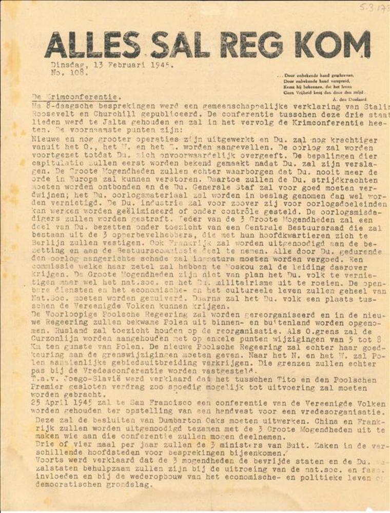 Alles sal reg kom. Dinsdag, 13 februari 1945. No. 117.