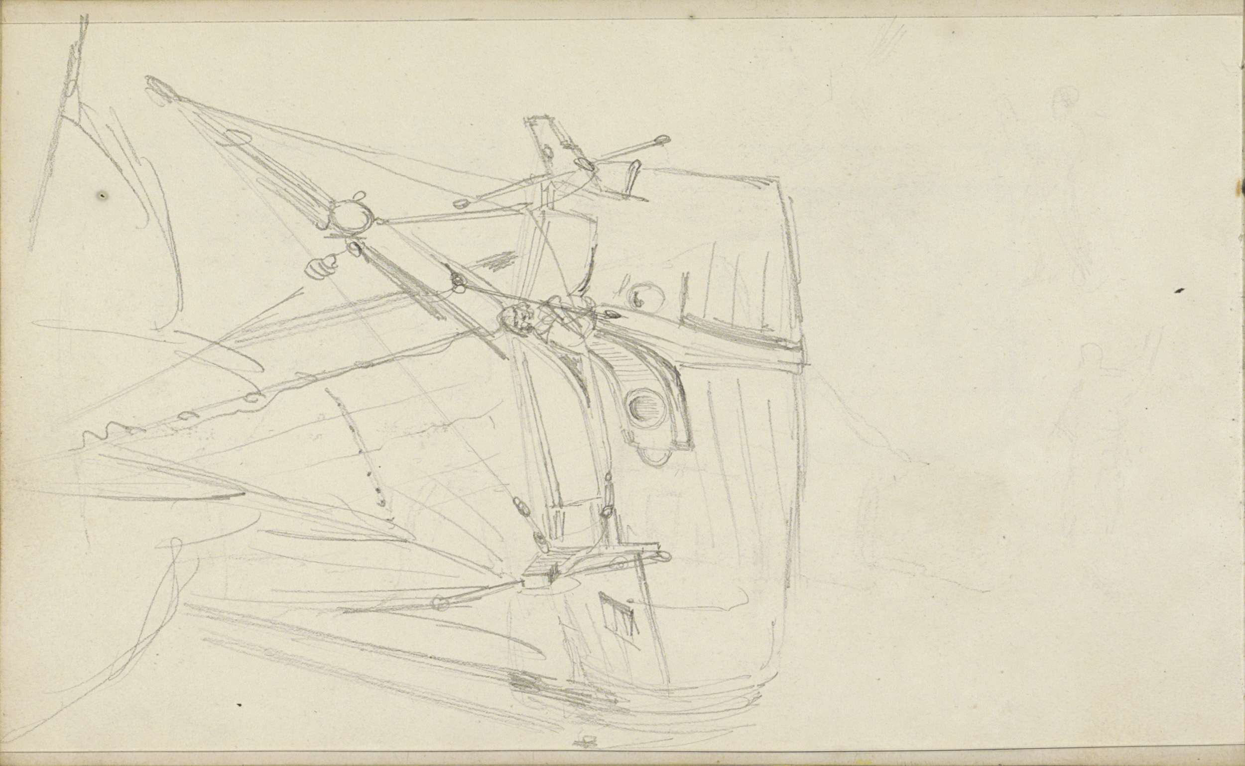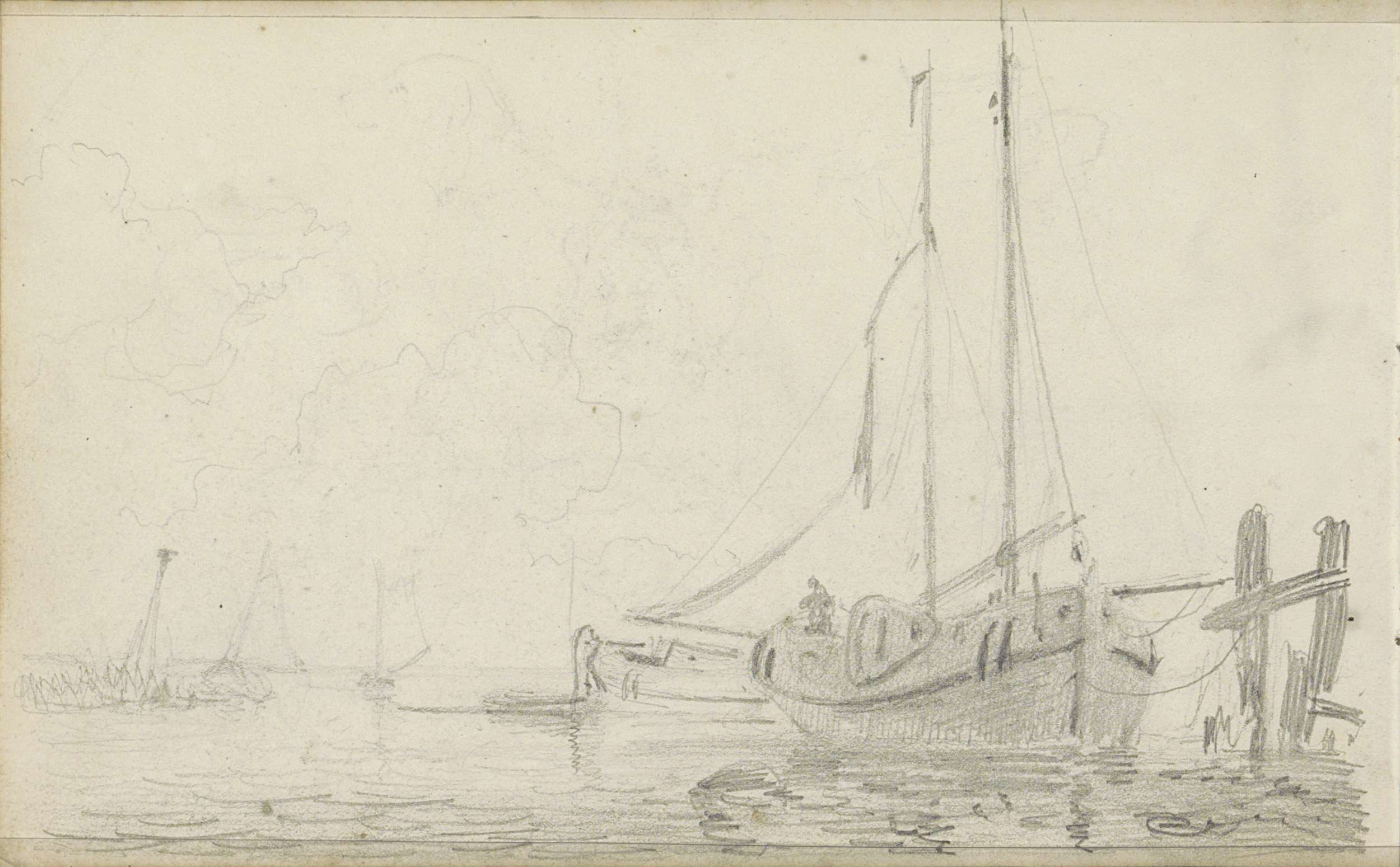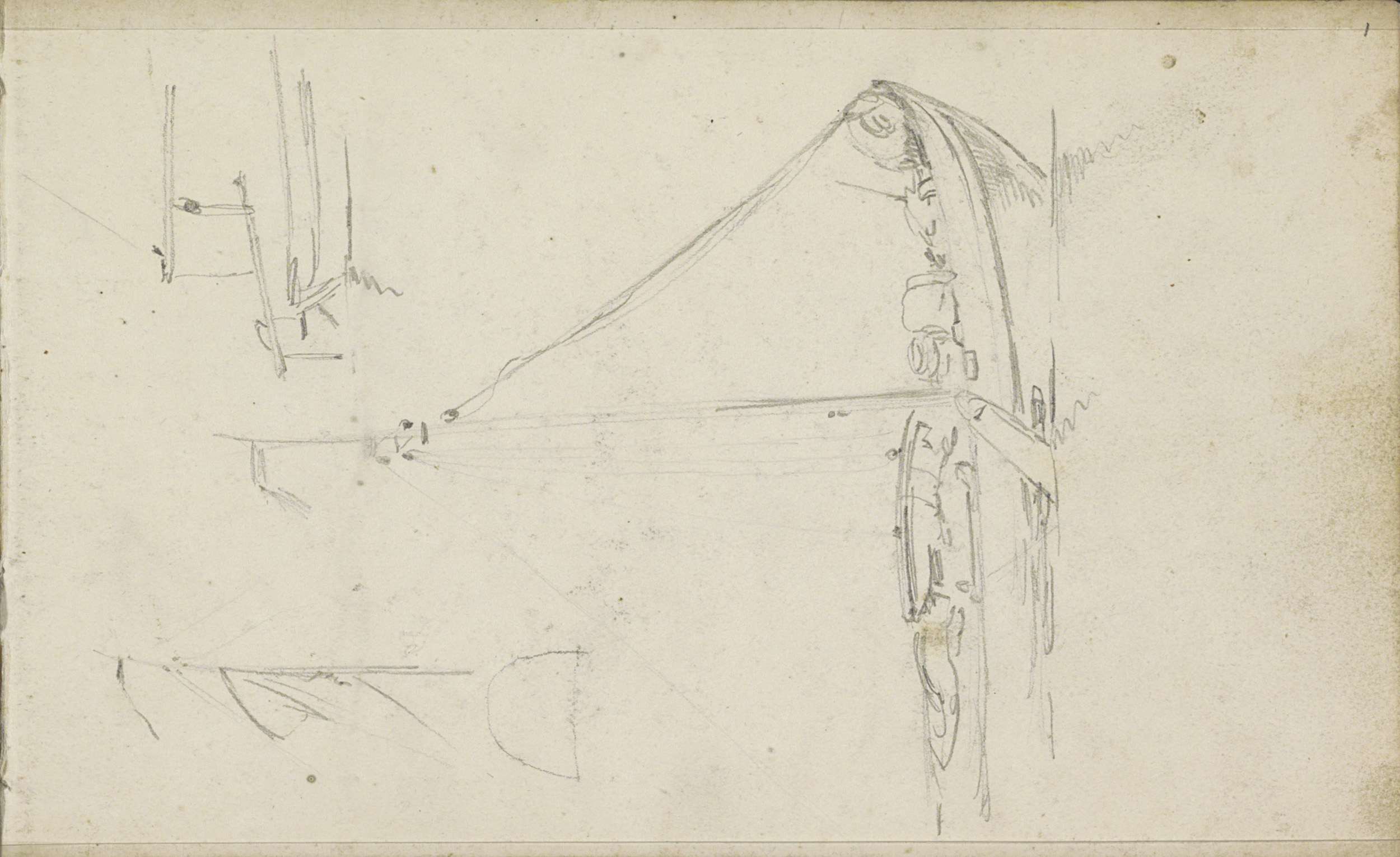Studieblad met onderdelen van een zeilschip